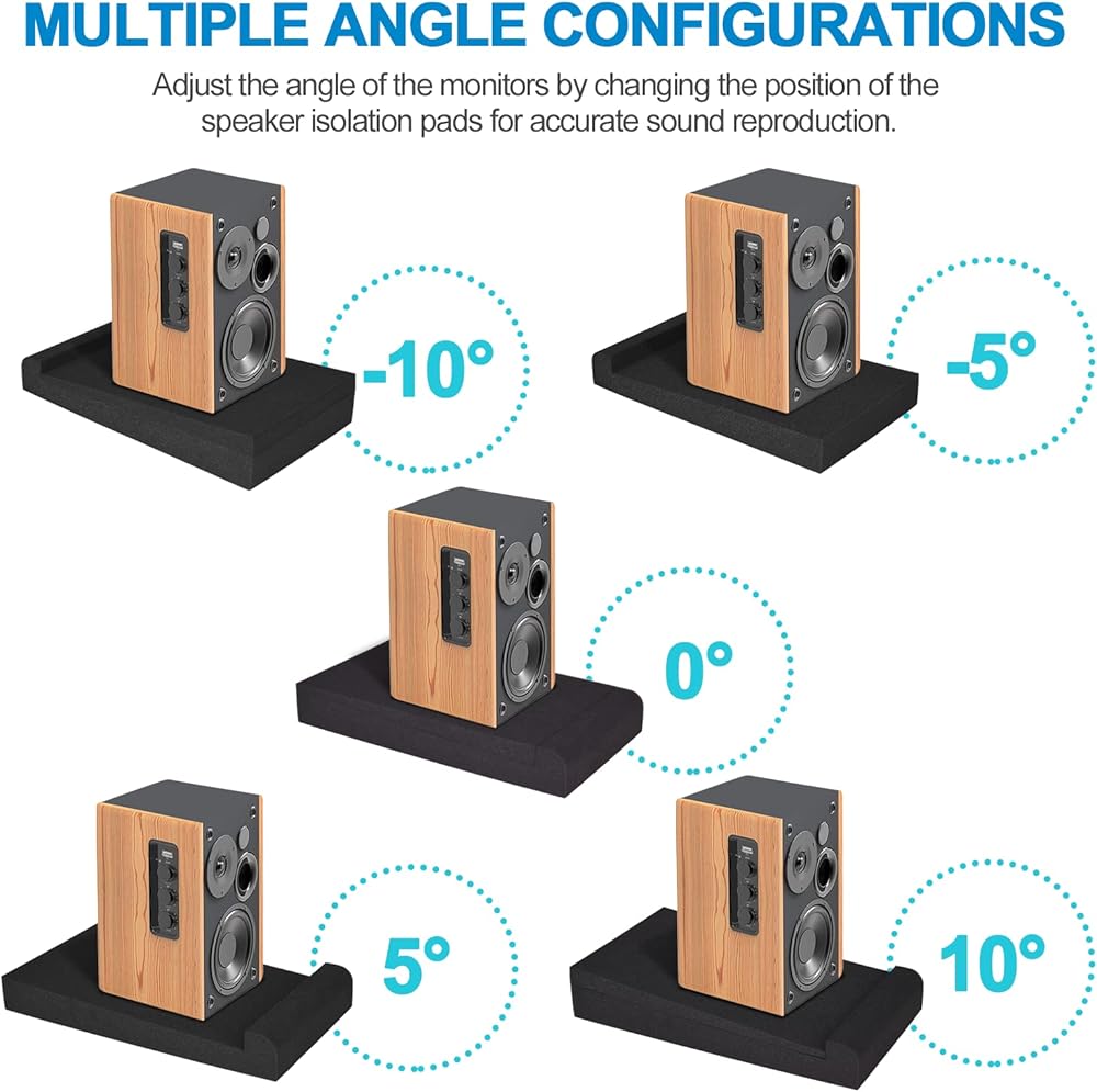 Clear Sound Reproduction: Studio monitor isolation pad comes designed with multiple configurations, such as, upwards, downwards and flat. The angle help direct the sound correctly, so you can get accurate sound reproduction without angling speakers.