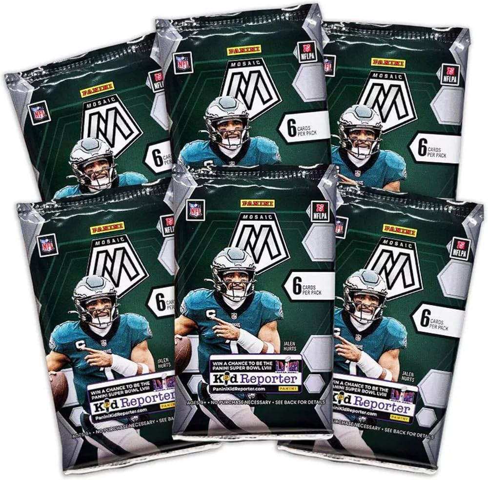 2023 Panini Mosaic NFL Football Factory Sealed Blaster Box 36 Cards (6 Packs of 6 Cards)! Official NFL Licensed Trading Cards! Chase autograph and base rookie cards of the 2023 Rookies such as Bryce Young, Bijan Robinson and CJ Stroud! Look for Blaster Exclusive Orange Fluorescent Parallels! BONUS - 5 Top Loader Card Sleeves to Help Protect Your Cards