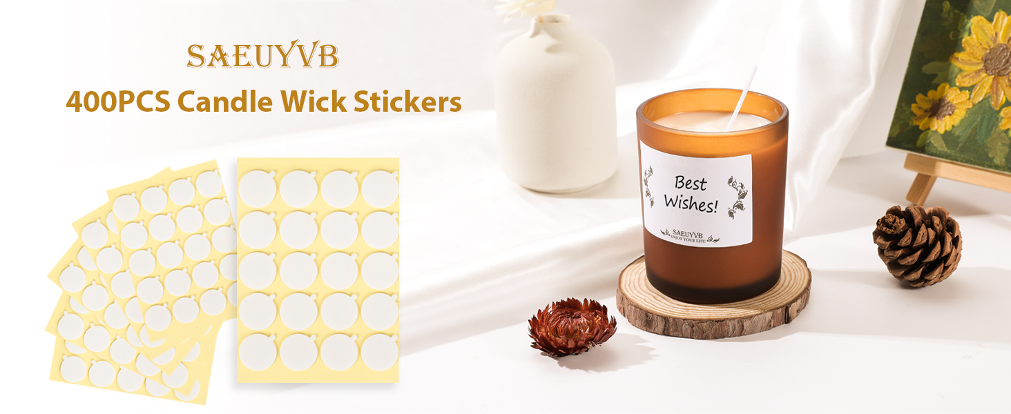 SAEUYVB 400PCS Candle Making Kit, Candle Wick Stickers, Candle Making Supplies, Double-Sided Stickers with The Little ‘‘Tail’’, Heat Resistance Wick Stickers for Candle Making