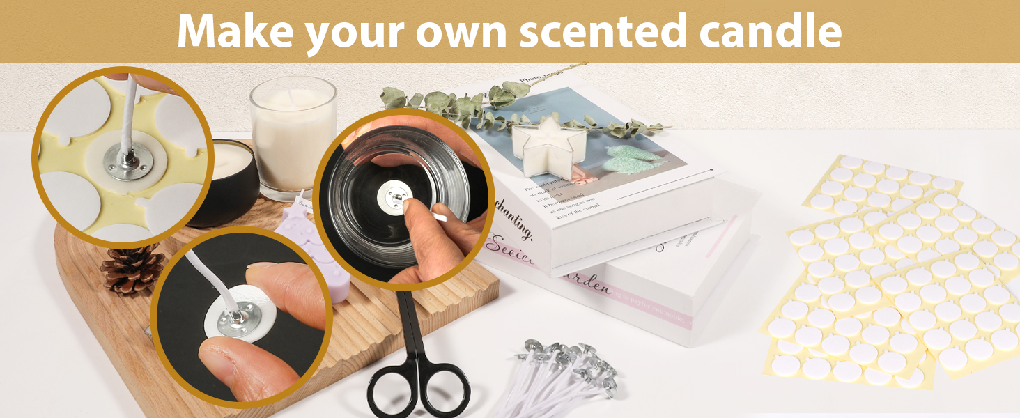 【Multiple DIY Fun】Candle wick stickers are an essential tool for candle making, which can be attached to different candle wicks, and can also be used to attach balloons, wall stickers, holiday decorations and more.