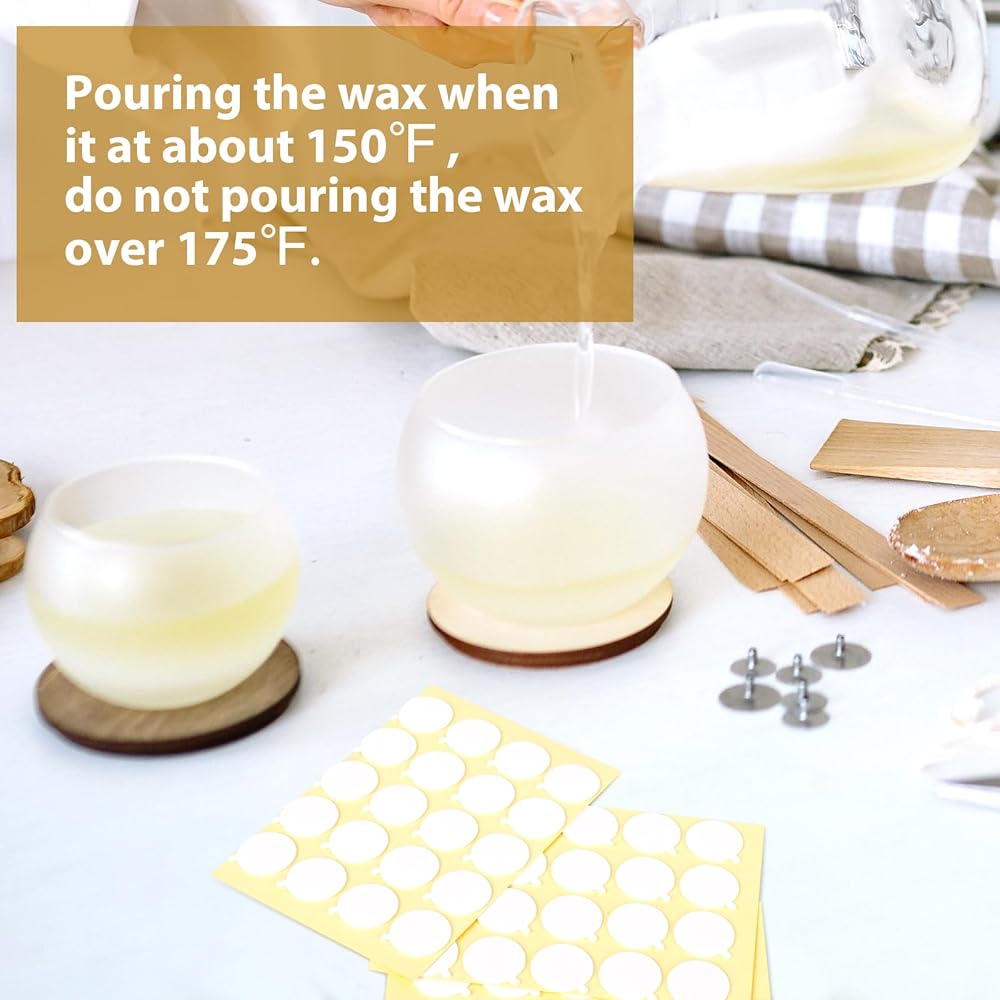 【Easy to Use】The little tab that extends beyond the top layer make it easier to remove. Place the candle wick stickers on the bottom of the wick and adhere your wick to the bottom of the jar. Put it for two hours and then pour wax water (The temperature of wax water should not exceed 175℉).