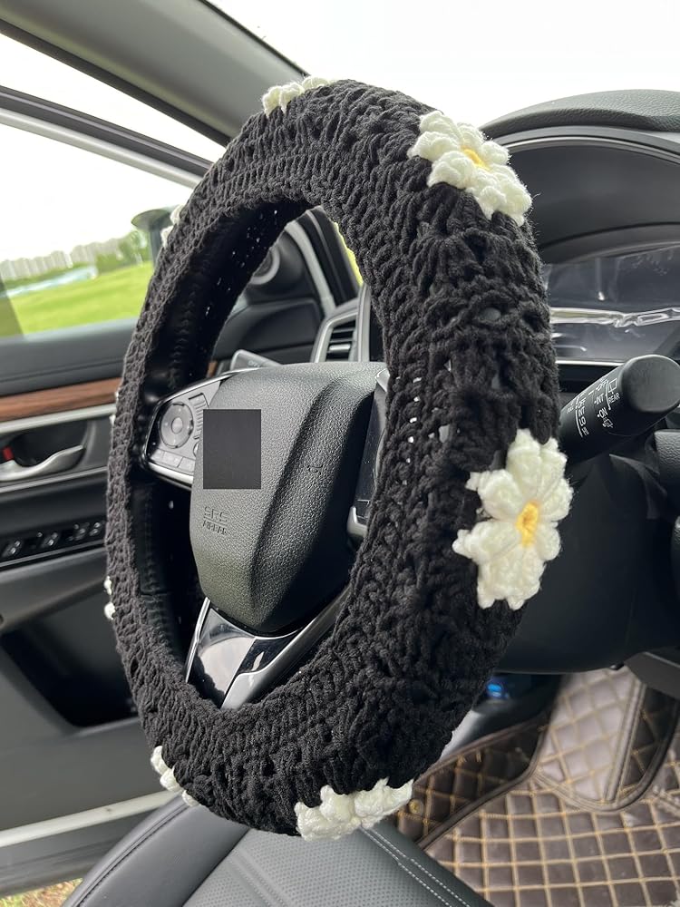 Suitable for mid-size steering wheels measuring from 14" to 15" in diameter,Fit Vehicles, Sedans, SUVS, Vans, Trucks,with Handmade Crochet craftsmanship, stylish, beautiful and distinctive, making your car more impressive, luxurious and eye catching,Perfect decor for your car, make your car unique, also protect your steering wheel new