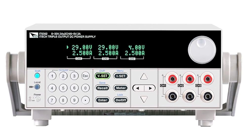 【Package Contents】3 Channel Programmable Power Supply*1, Certificate*1, User Manual*1, Calibration Report*1, Power Cord*1, USB Communication Cable*1 ( Notice: The Red and Black Test Line is optional accessories, not standard accessories, you can buy it in ITECH Electronic store)