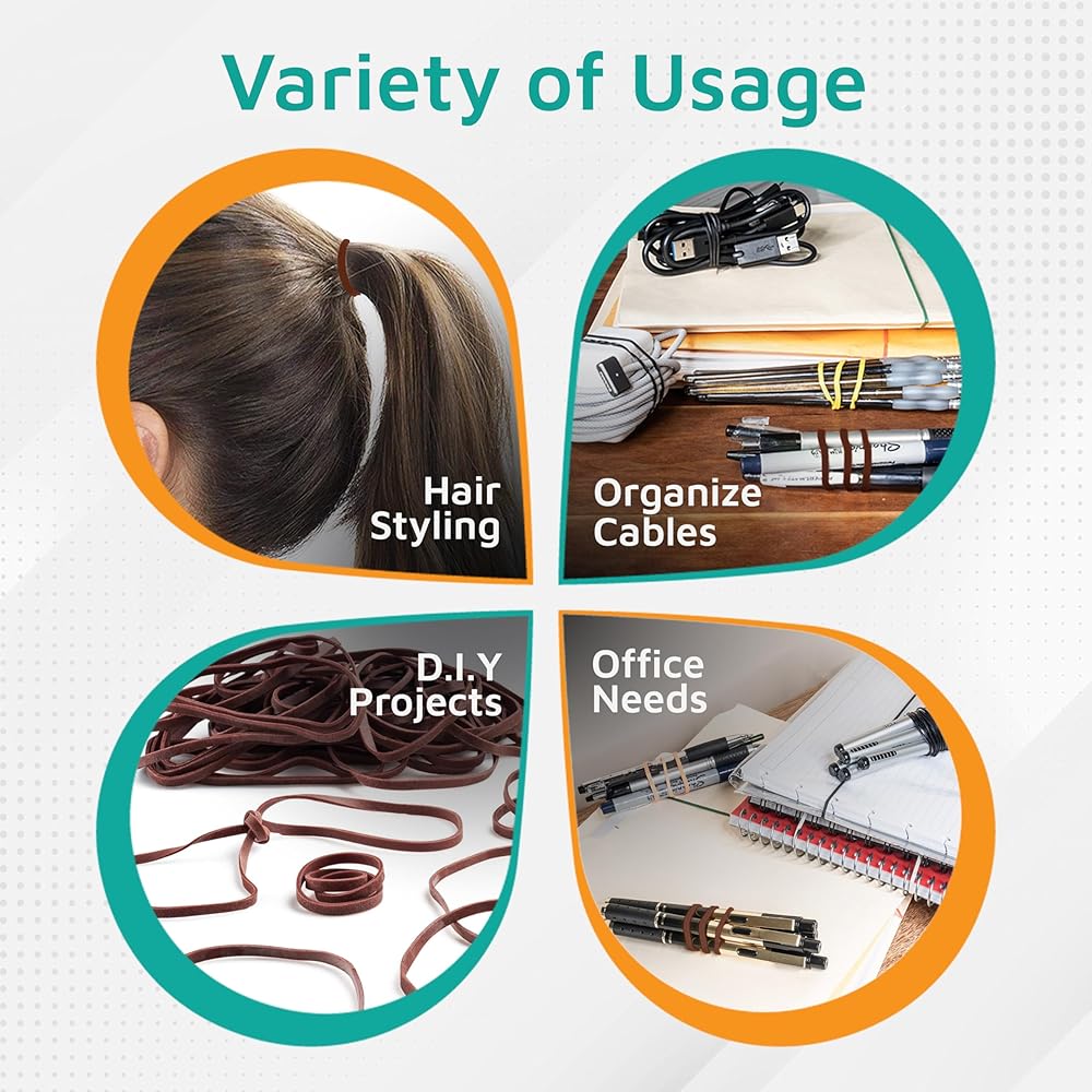 • Soft stretch: These rubber bands have a soft stretch making them comfortable to use and handle. Perfect for everyday use: Ideal for organizing papers and sealing bags at home or in the office.