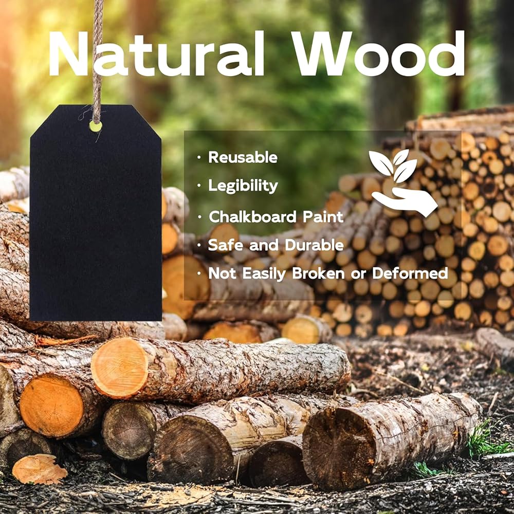 Material: The wood chalkboard tags is made of natural wood, black paint on the surface, can be directly written with chalk, durable, can be used repeatedly.