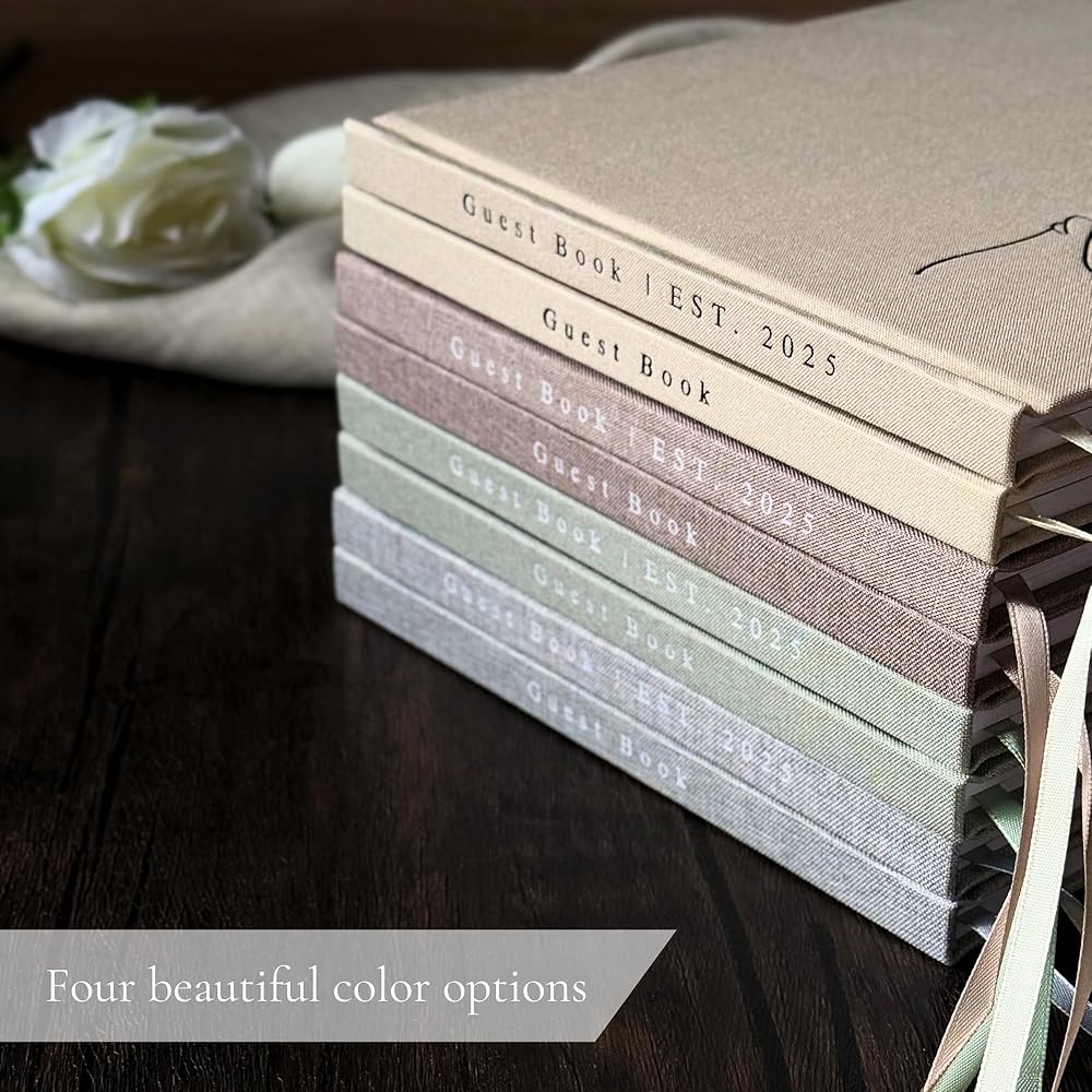 BEAUTIFUL DESIGN - A blend of modern elegance and timeless charm with its linen cover, silk bookmark, and added bonus of serving as beautiful table decor, providing a tangible and enduring way to revisit memories of your special day.