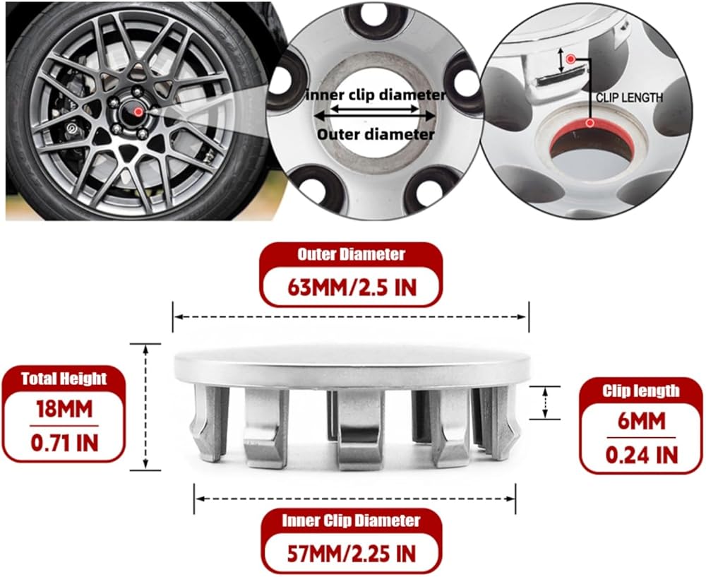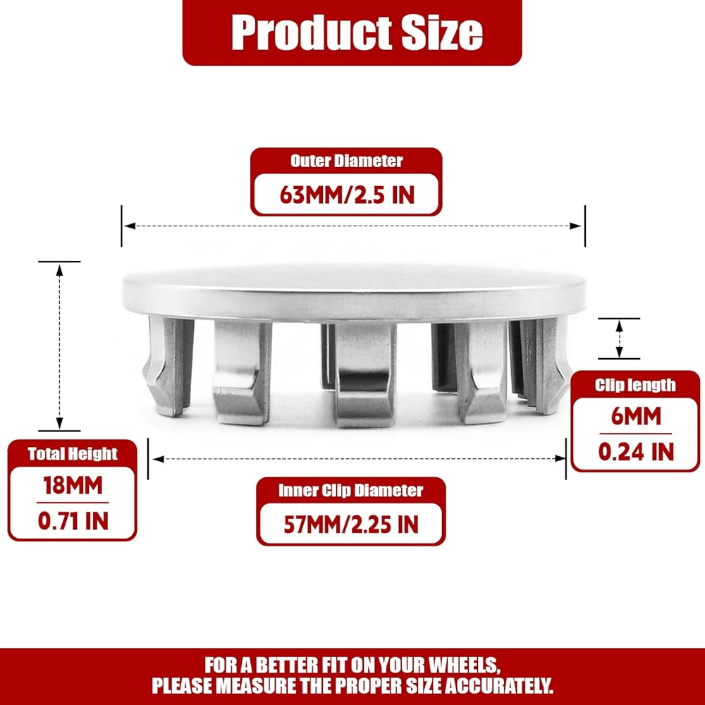 Size: outer diameter is 63mm ( 2.5 inch ) , inner clips diameter is 57mm (2.25" )