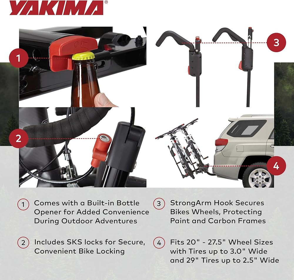 Adventure ready: Load your bike in seconds whether it's a 20-inch wheel or a 29er; StrongArm design secures bike at wheels, protecting paint and carbon frames
