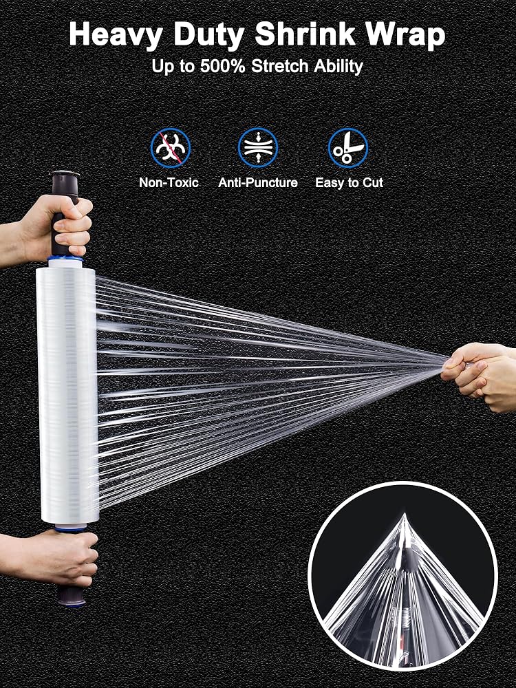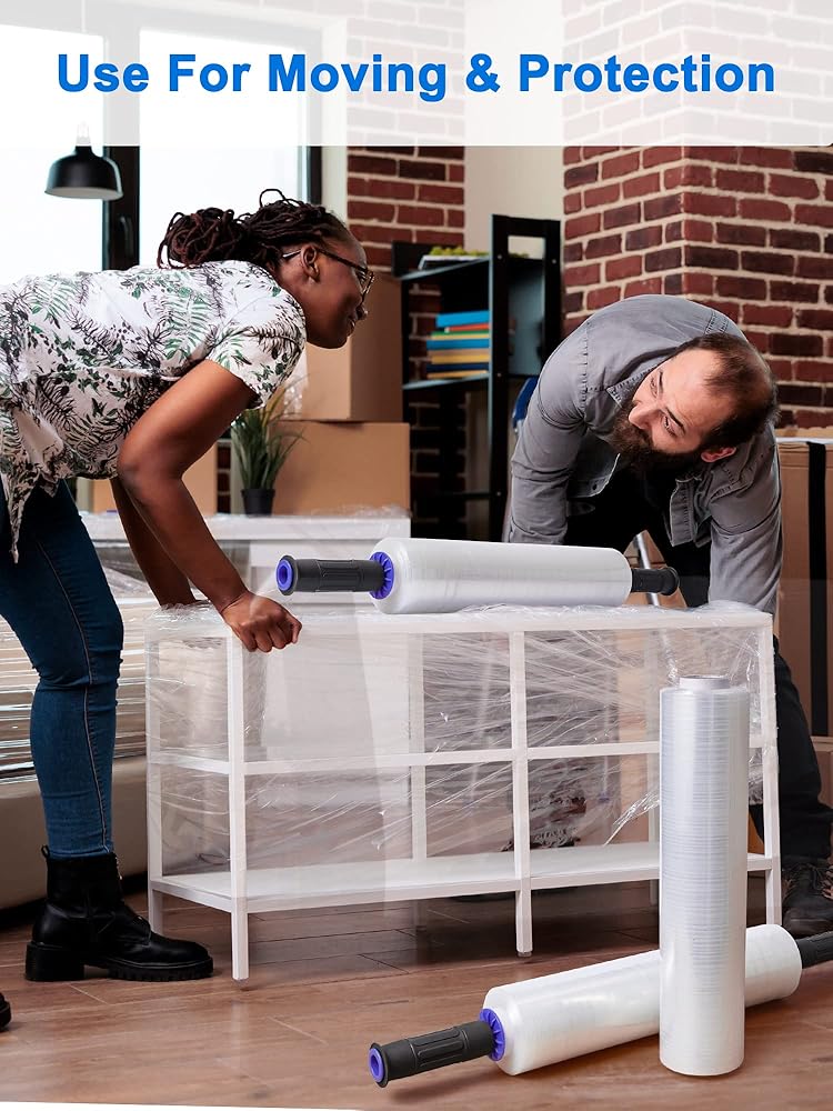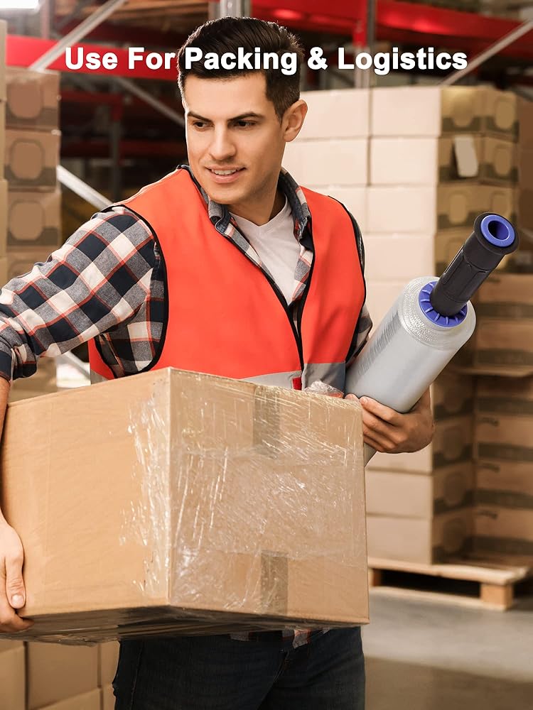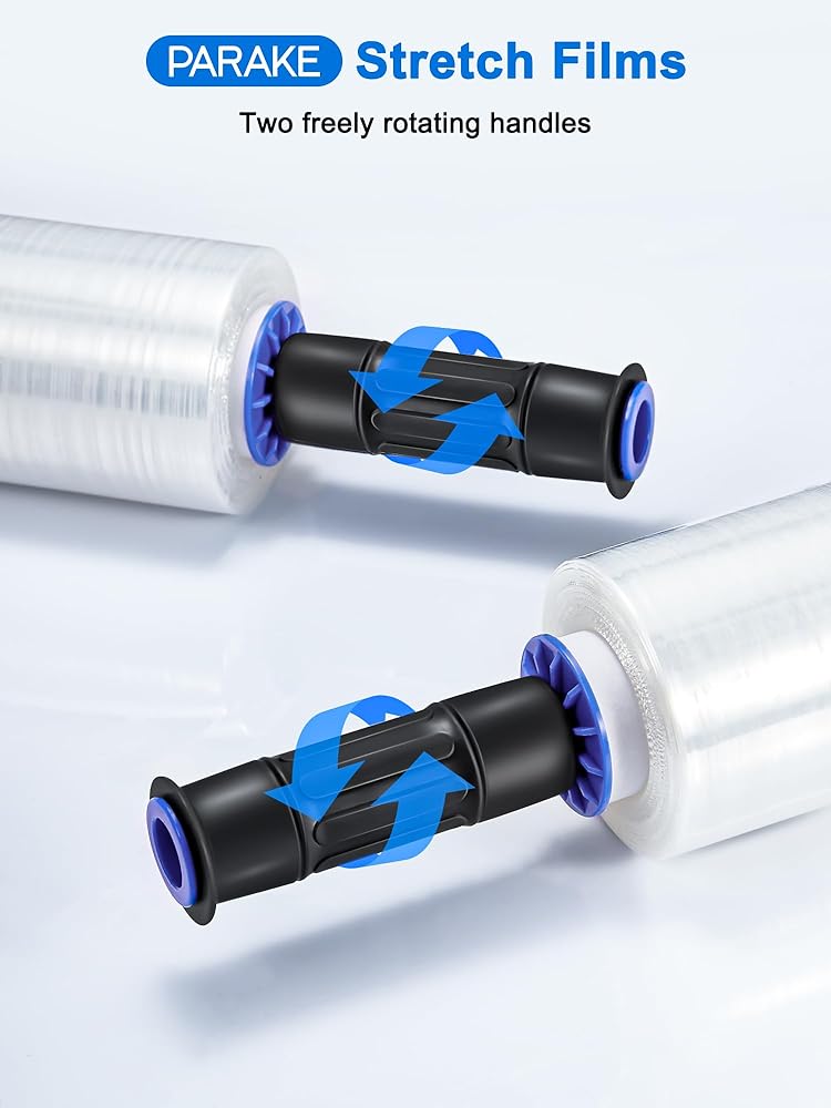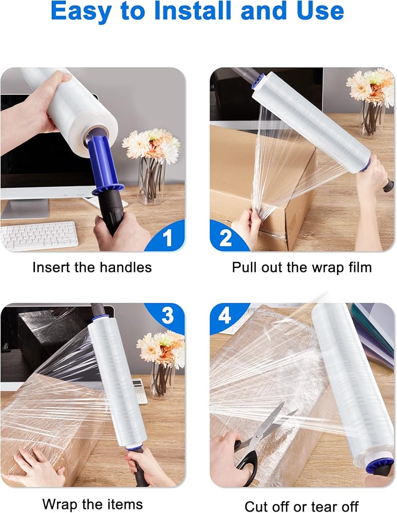 Easy-to-Use Rotating Handles: Stretch film with rotatable handles help you increase packaging efficiency and save the time it takes to pack. Simply insert the handle into both ends of the shrink film roll and you are ready to use