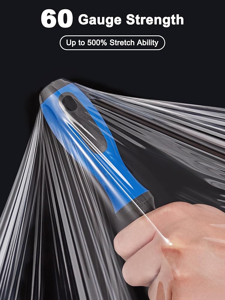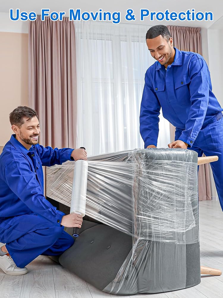 Industrial Strength Stretch Film: Heavy-duty shrink wrap made of odorless and non-toxic polyethylene material, can provide superior protection during transport, keep your furniture away from rain, snow and dust