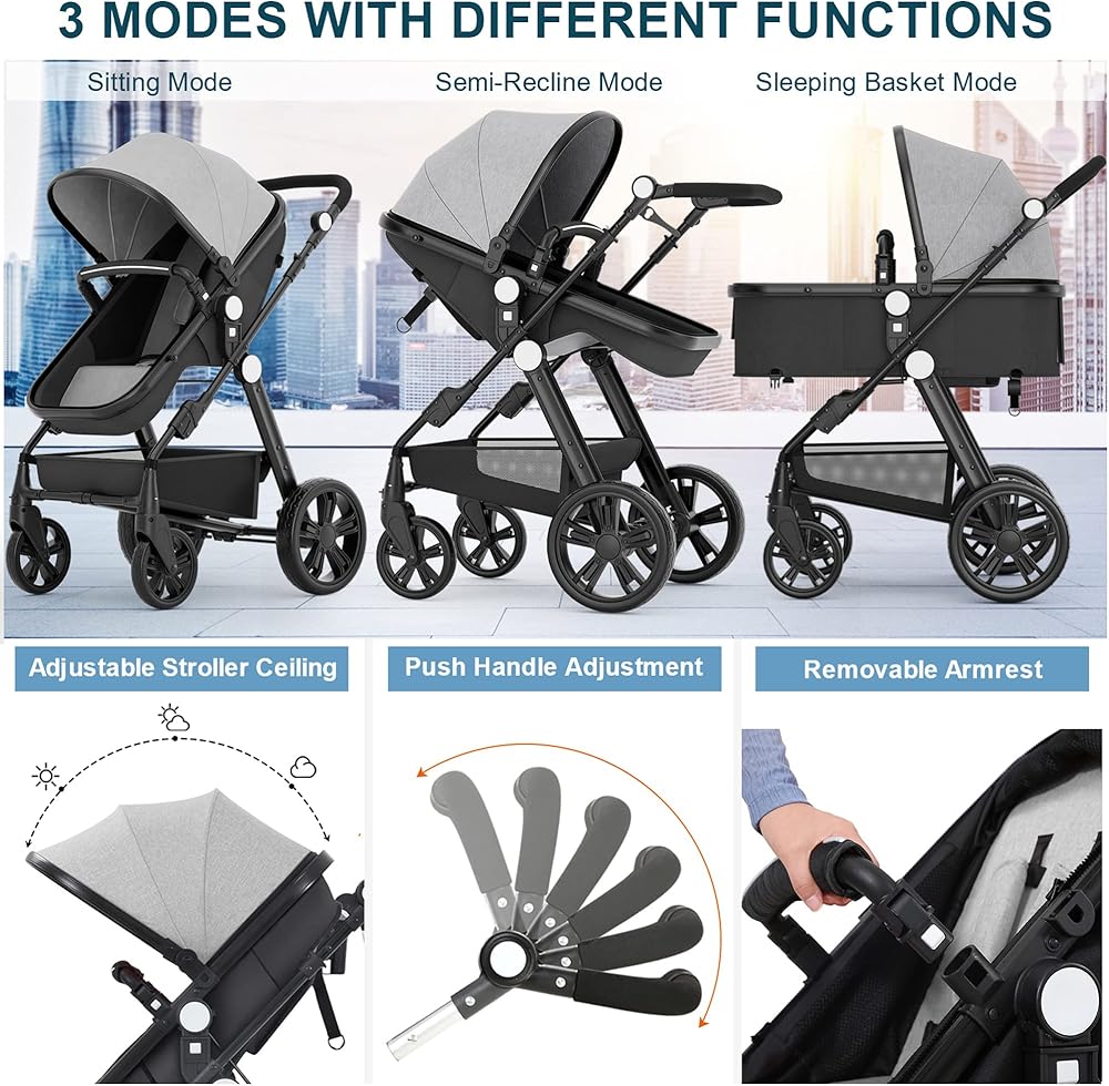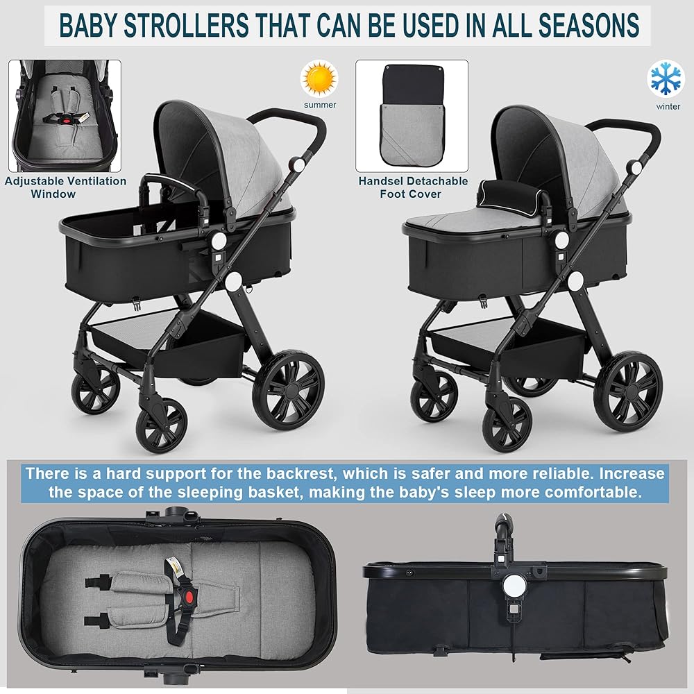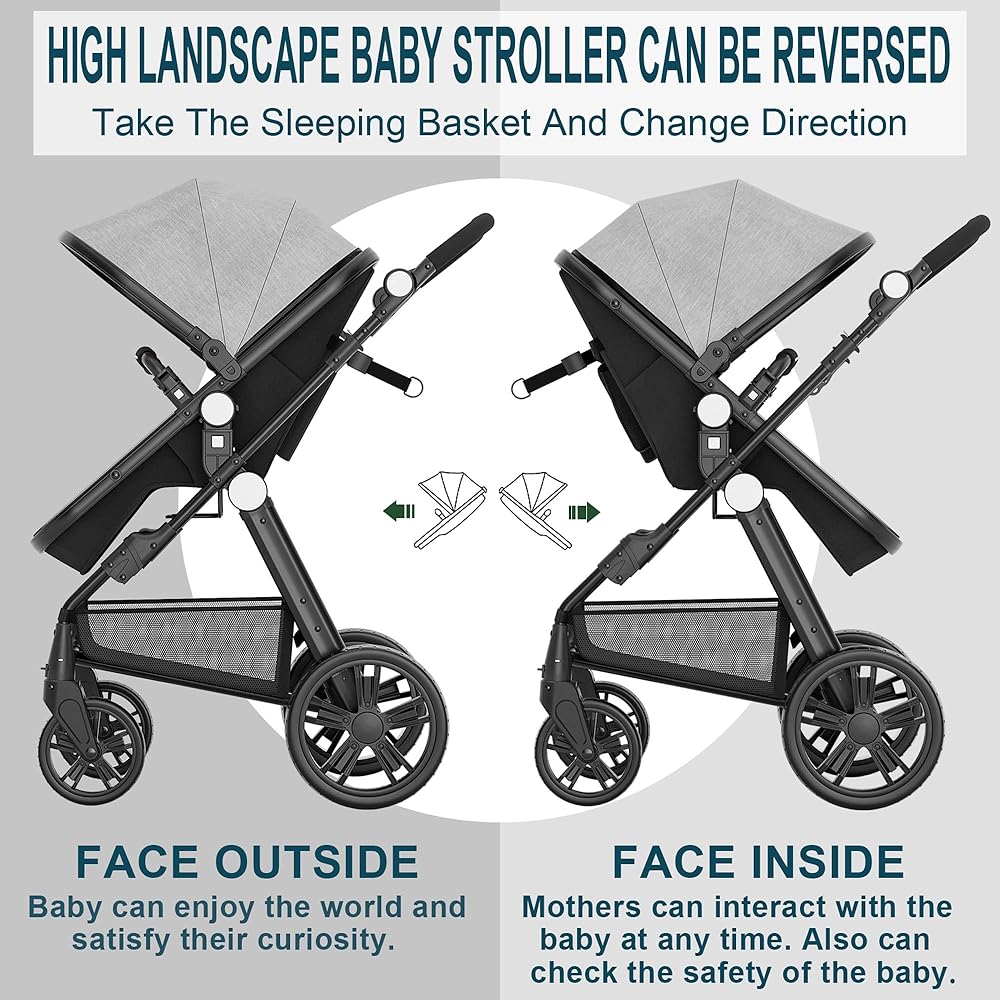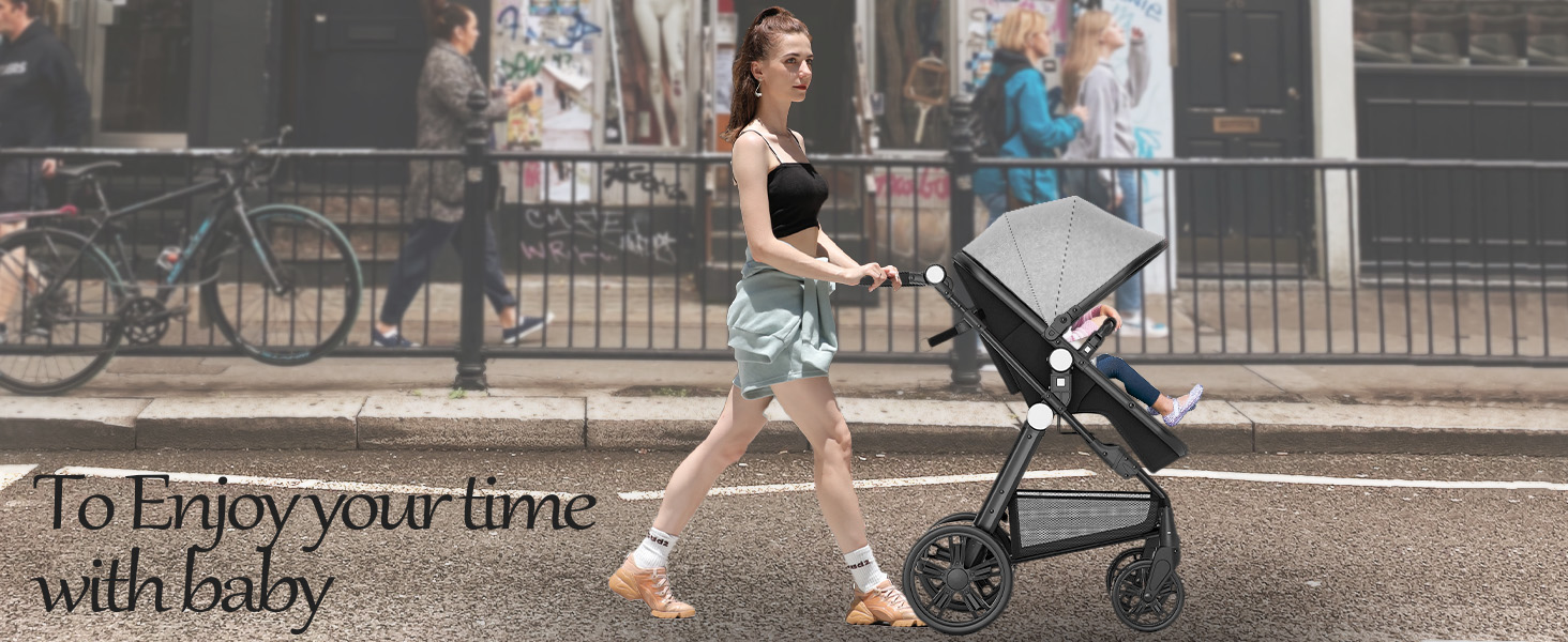 [BABY HEALTH] Our high landscape baby stroller, effectively avoiding the car exhaust layer, protecting the baby's physical health. If the seat of the stroller is very low and the stroller is walking in the crowd, the baby's perspective can only see densely packed human legs, your baby will be very scared. Therefore, our high landscape foldable stroller is more conducive to the baby's mental health.