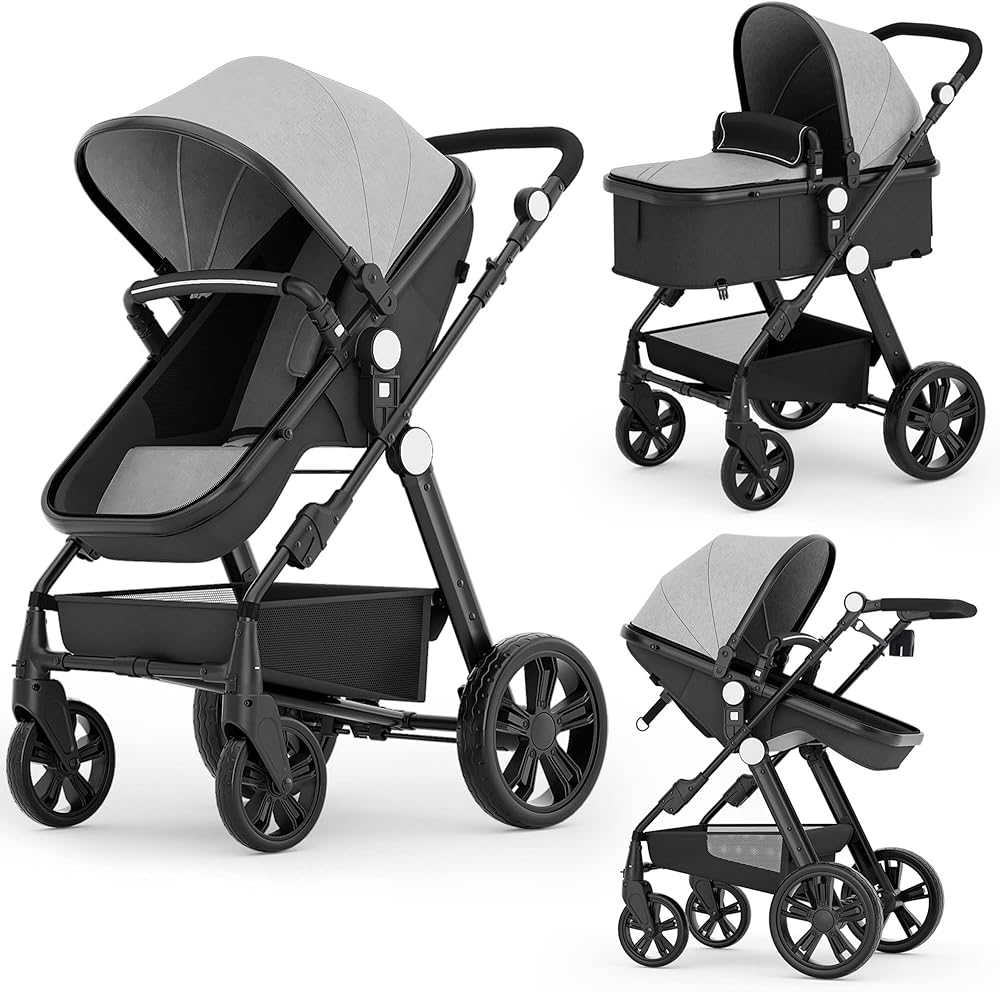 [EASY & SAFE]Our pram for 0-36 months old baby. This portable baby stroller is foldable for easy carry, with a foldable design, you can quickly fold it up and collect it into the car trunk or room when you are not using it. High-quality thickened aluminum alloy for the main structure ensures that the baby wagon stroller is durable. The linen fabric, metal paint surface, oxford material, rubber and plastic (PP material) non-toxic and tasteless, with US CPC certification.