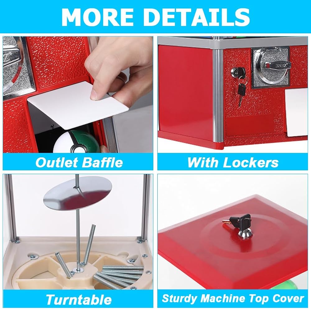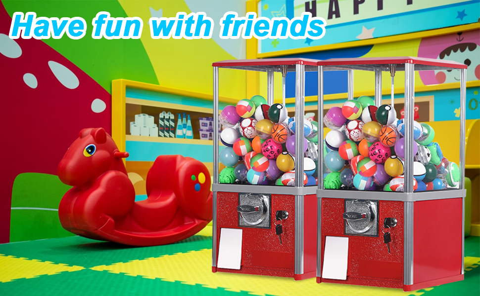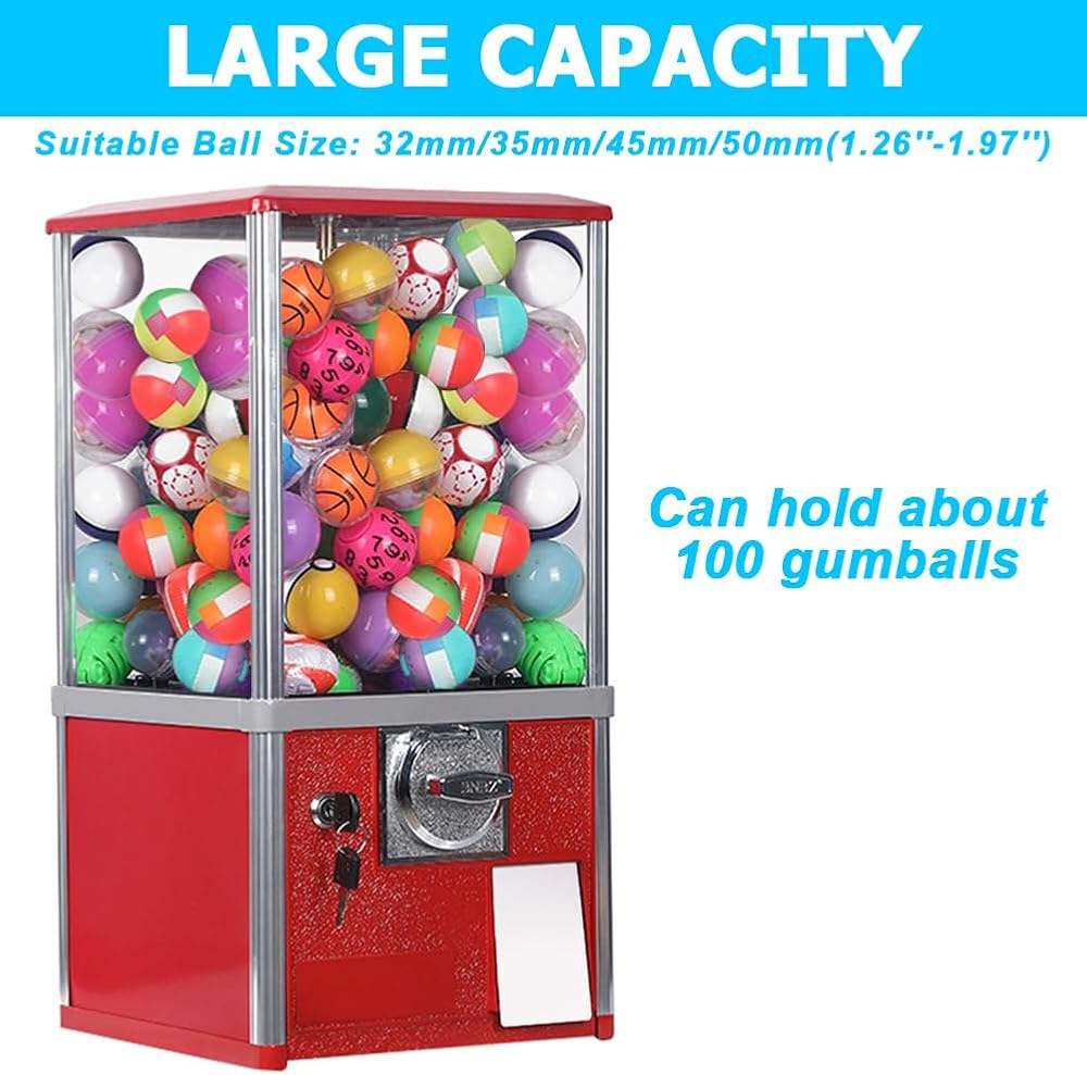 【Large Capacity】: With dimensions of 10.2*11.4*20.9 inches, the gashapon machine can accommodate approximately 100 gumballs, eliminating the need for frequent refills. Perfect for meeting the demands of most retail stores and amusement parks.