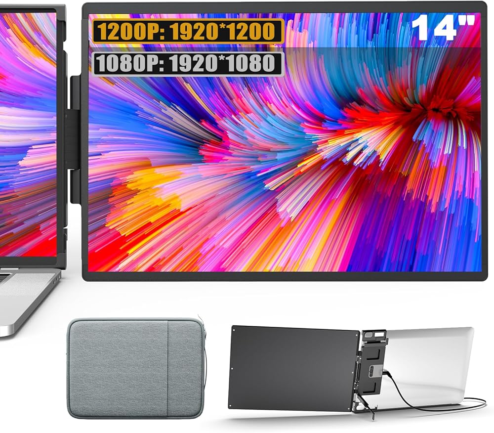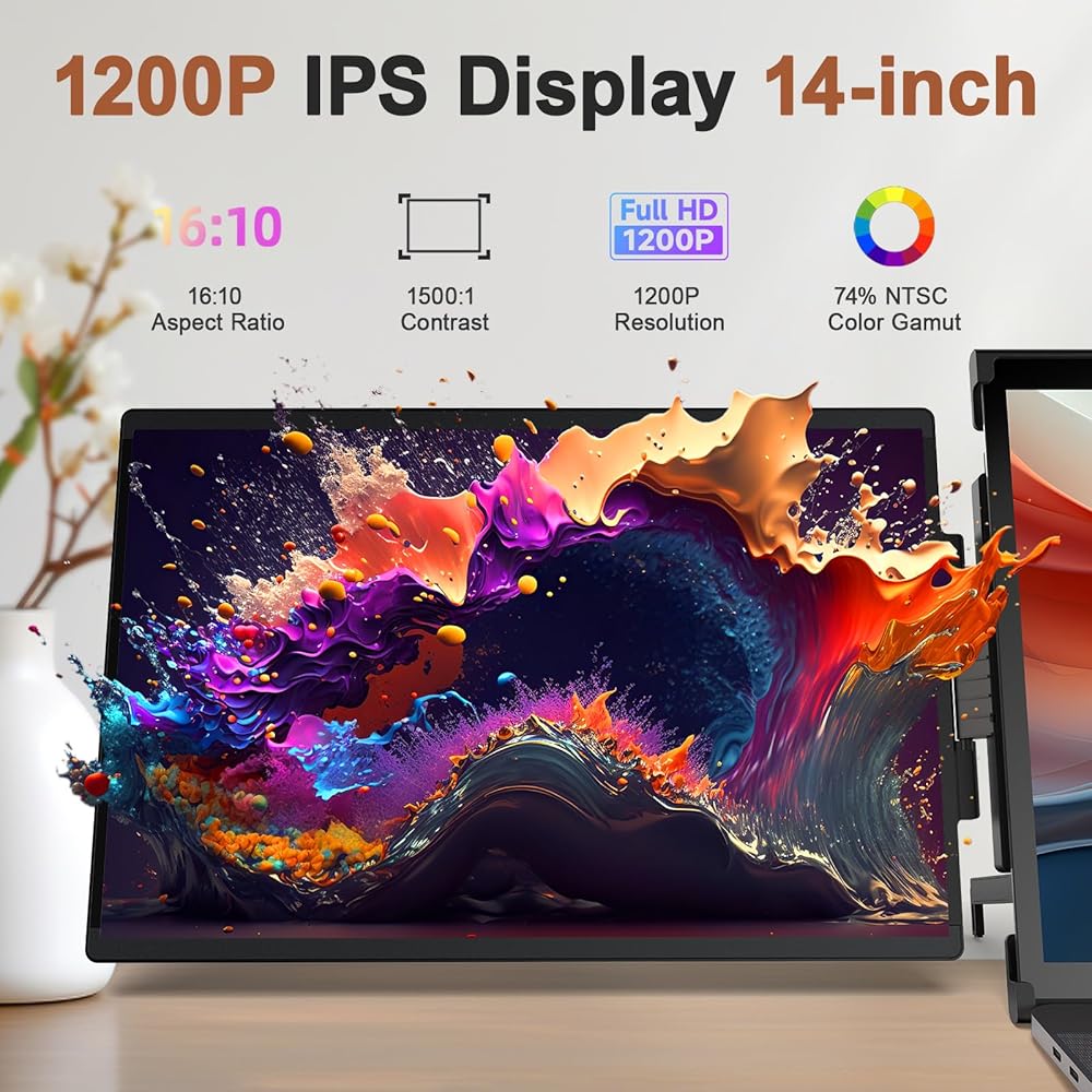 Oiiwak Laptop Screen Extender, 14" FHD 1200P IPS Dual Laptop Monitor Extender, Al Alloy Body Extended Portable Monitor for Laptops 13.3-16", Type-C/HDMI/USB-C Port Plug and Play for Windows Mac