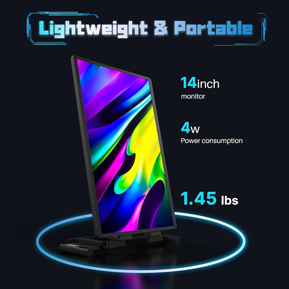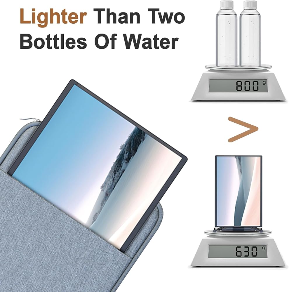 🔔𝐆𝐨𝐨𝐝 𝐢𝐧 𝐓𝐞𝐫𝐦𝐬 𝐨𝐟 𝐏𝐫𝐚𝐜𝐭𝐢𝐜𝐚𝐥𝐢𝐭𝐲.The 16:10 aspect ratio, 4mm ultra-narrow bezel, and 14-inch screen can give you a larger and wider visual area. Weighing 1.36lb (620g) and paired with a custom carrying case. There are two aluminum alloy brackets on the top and bottom, which are very stable and will not collapse even during a bumpy flight. And it consumes only 4 watts of power. M14 laptop monitor extender - a good companion for business trips and travels.