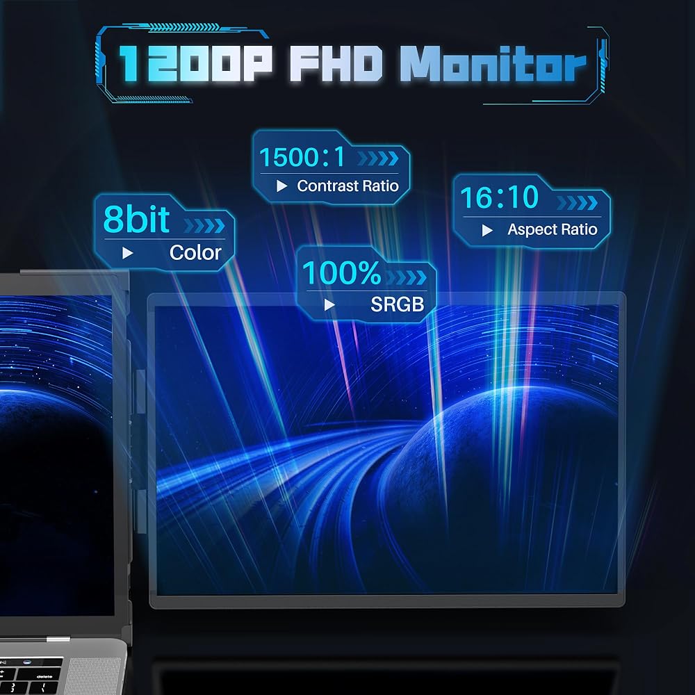 🔔𝐏𝐫𝐚𝐢𝐬𝐞 𝐟𝐨𝐫 𝐒𝐜𝐫𝐞𝐞𝐧 𝐃𝐢𝐬𝐩𝐥𝐚𝐲 𝐐𝐮𝐚𝐥𝐢𝐭𝐲.An impeccable laptop monitor attachable portable must not only have a unique design but also have better display effects. 1920 * 1200 resolution, 1500: 1 contrast ratio, 100%SRGB, 74%NTSC, 400nits brightness, its excellent display quality can provide bright colors and realistic image effects, bringing unparalleled visual experience. In addition, it also has anti-glare and blue light filtering functions, which can better protect our eyes.