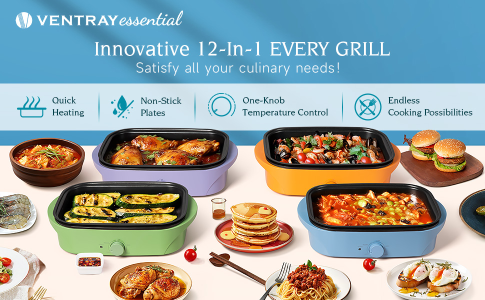 MULTI-FUNCTIONAL FEATURE - This 12-in-1 electric grill comes with 12 different cooking functions. It allows you to experiment with a variety of recipes and enhances your daily cooking experience.