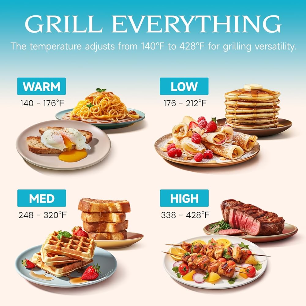 EASY TO OPERATE - This electric grill features an adjustable temperature dial, offering a range of 140℉ to 428℉ for effortless control.