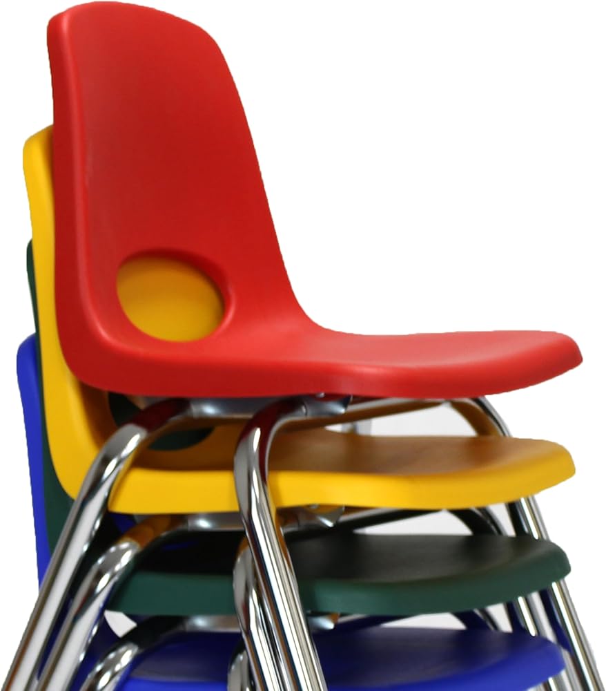 Perfect for any classroom space, the innovative School Stack Chairs are built for comfort and durability. Each chair features a molded seat with vented back for comfort, reinforced ribbing behind and under the seat for added strength, and steel lower back support. Don't worry about hair or clothes getting caught — our no-snag design ensures screws and other hardware don't poke through the seat. Chairs are easy to wipe clean and sanitize at the end of the day. Colors may vary.