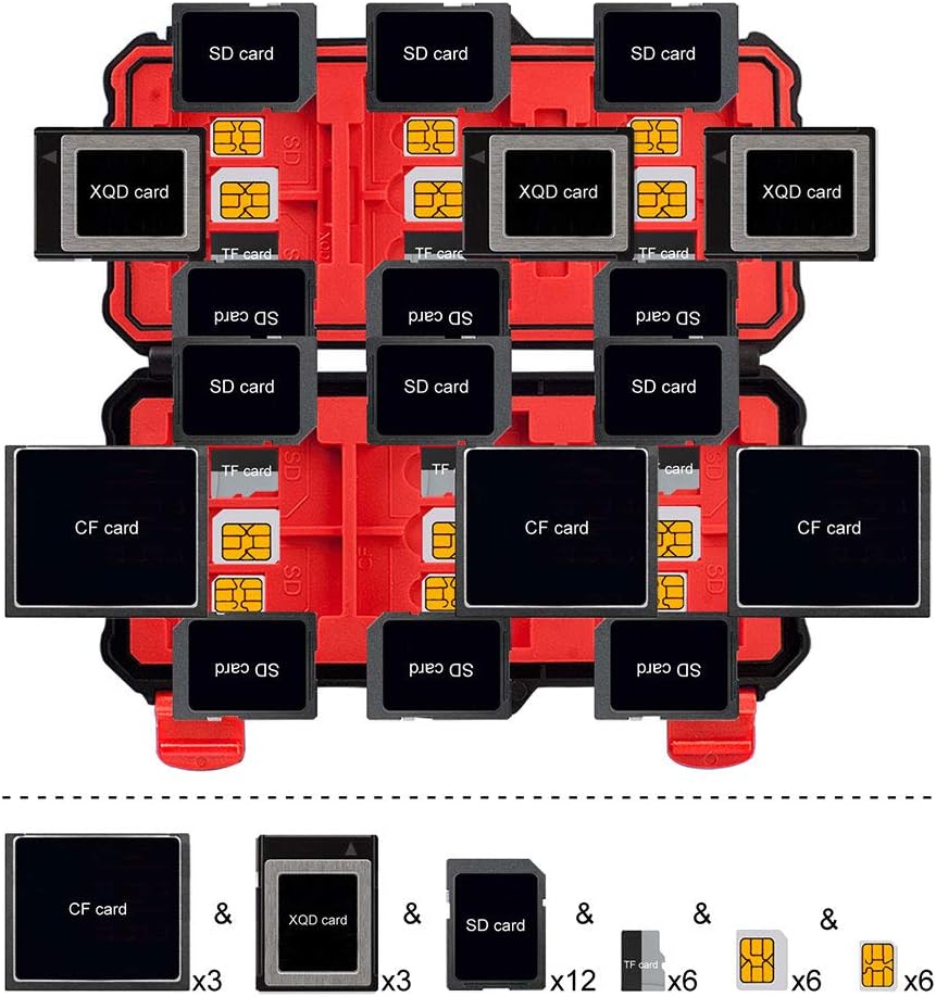 【ما تحصل عليه: يمكنك الحصول على حامل حافظة بطاقات الذاكرة*1. صندوق تخزين بطاقات الذاكرة الخاص بنا خفيف الوزن وسهل الحمل. حجم المنتج: 73 مم × 59 مم × 26 مم، الوزن: 75 جم، سهل الحمل