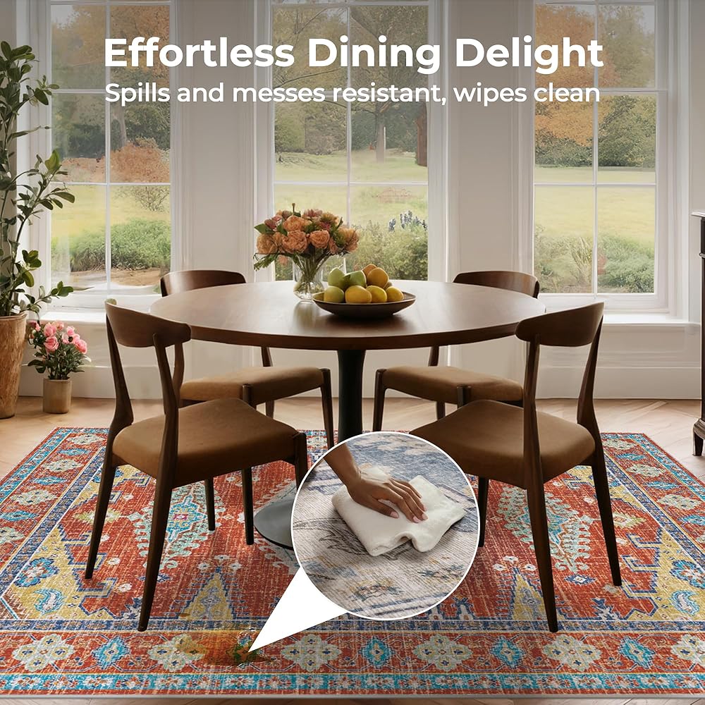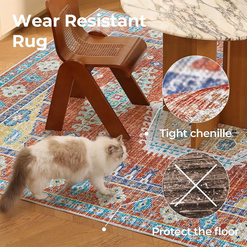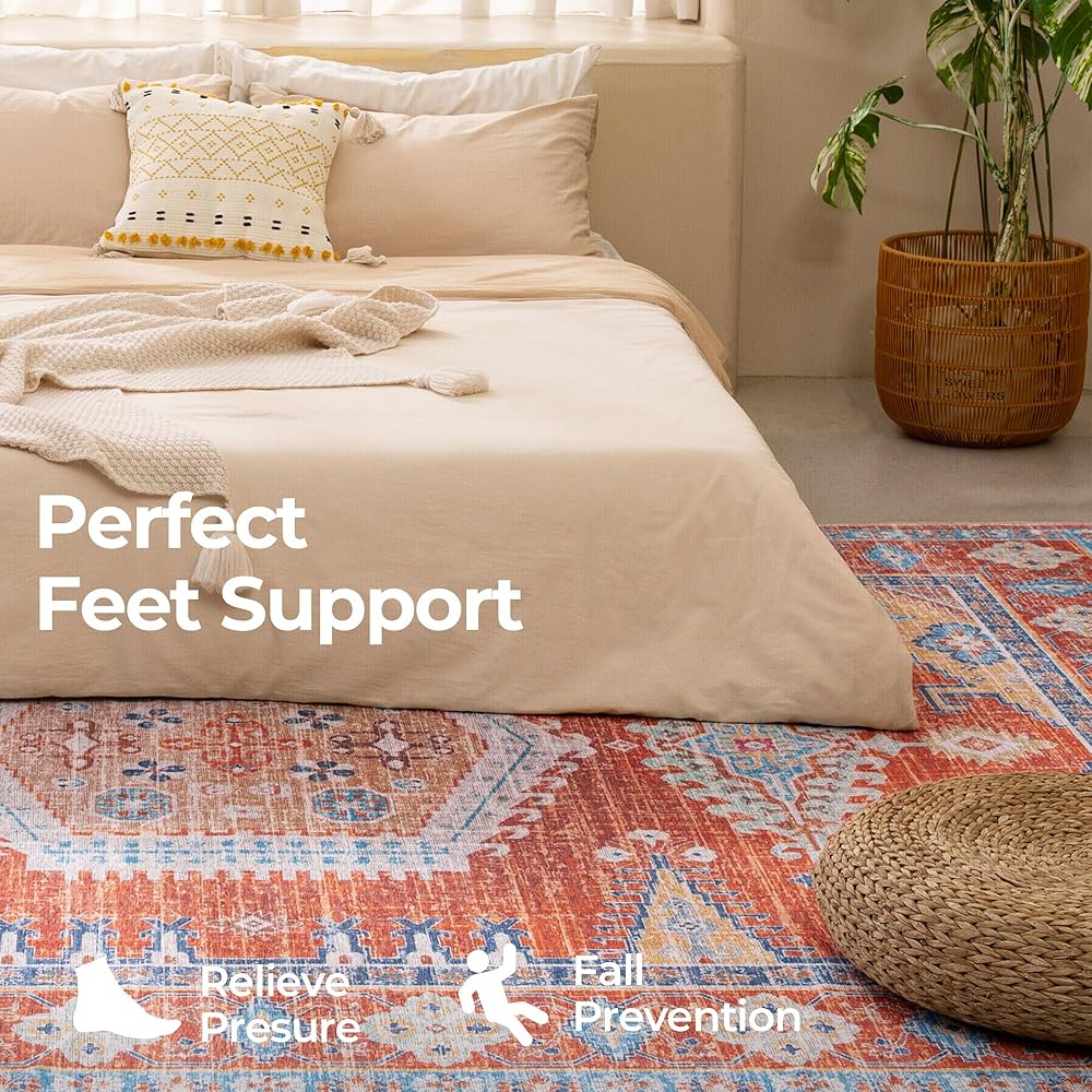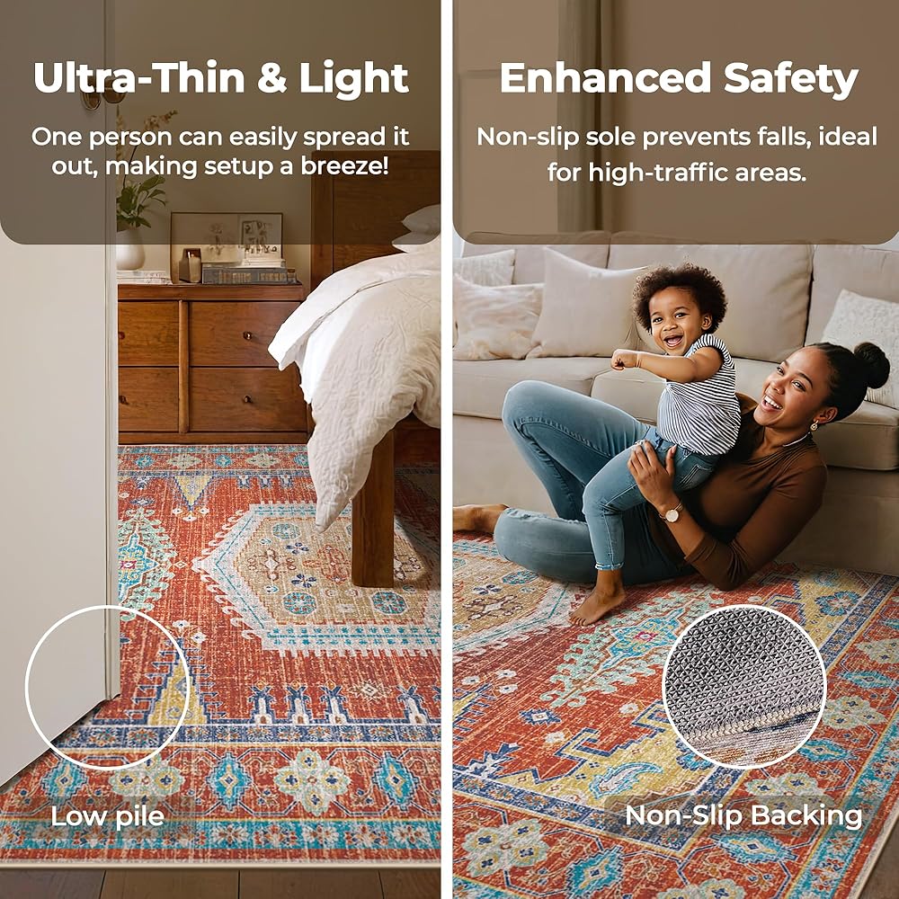 Non-Shedding & Non-Slip: The living room rug is handly crafted with durable reinforced edges. The non-slip TPE backing can hold the rug in place, making it safer in high-traffic areas, while also protecting wood floors.