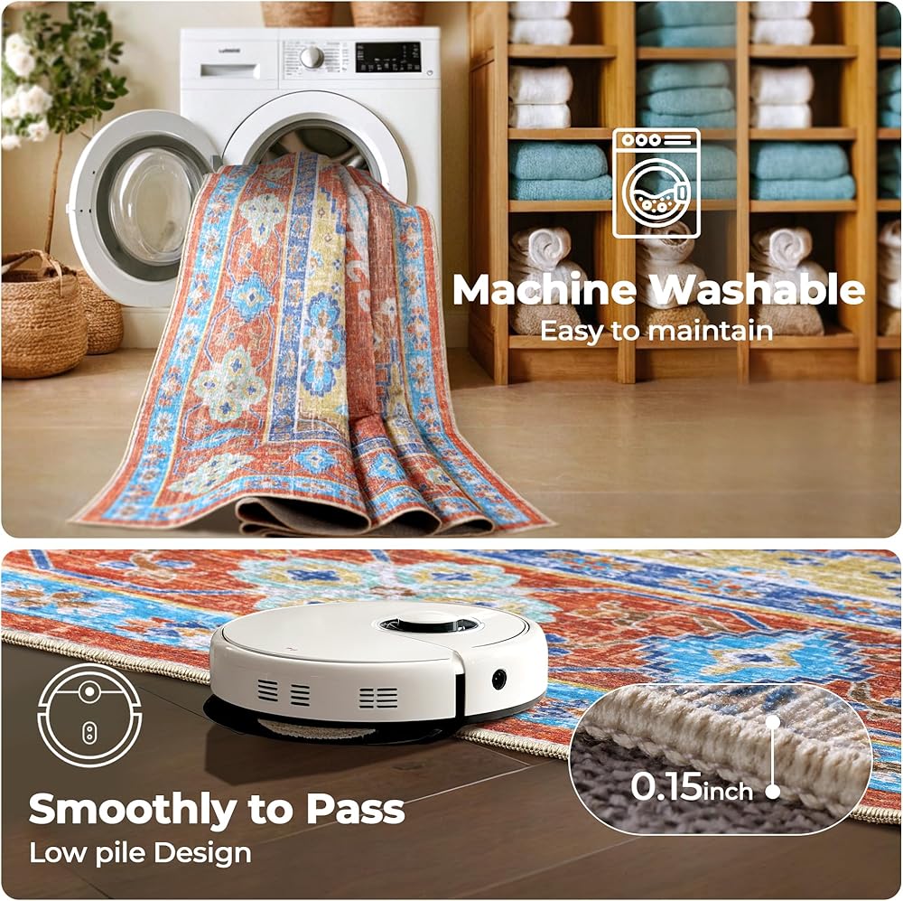 Machine Washable Rug: Kokia washable rugs are stain-resistant and easy-to care. Using a vacuum cleaner to remove dust for daily maintained, and liquid stains can be cleaned to use a sponge or a mild detergent.