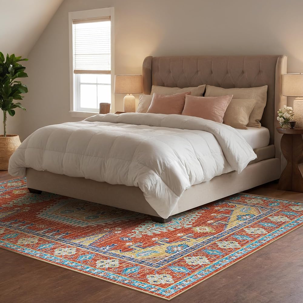 Kokia Rug Care: Foldable 5×7 rug make it easier to taking it in or out. Flatten it under furniture or roll it up for a few days to remove temporary creases. Due to monitor differences, slight color variations are natural.