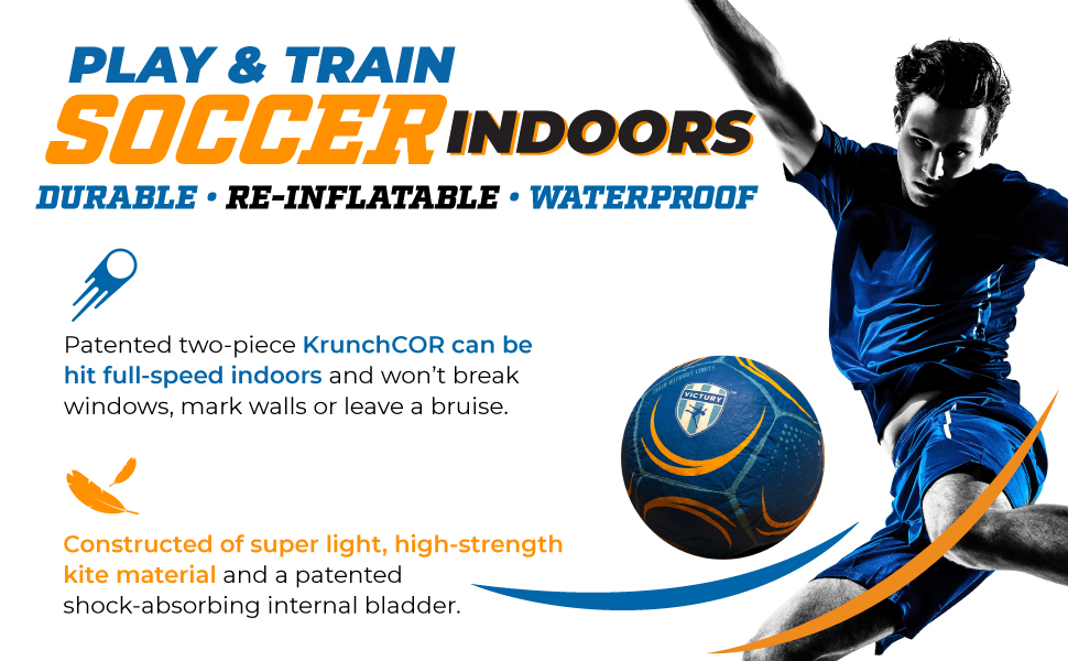 ⚽️ ABSORBS IMPACT: Our soccer training ball to can be hit full-speed indoors and won't break windows, mark walls or leave a bruise. The VICTURY V1 ball is constructed of super light, high-strength kite material and a patented shock-absorbing the internal bladder.