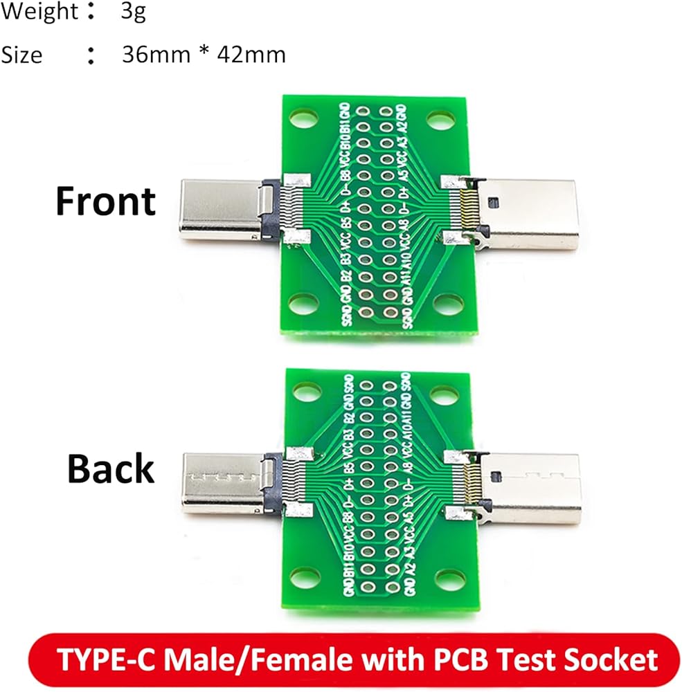- 2pcs USB Type-C Male to Female Connector Adapter Test Board