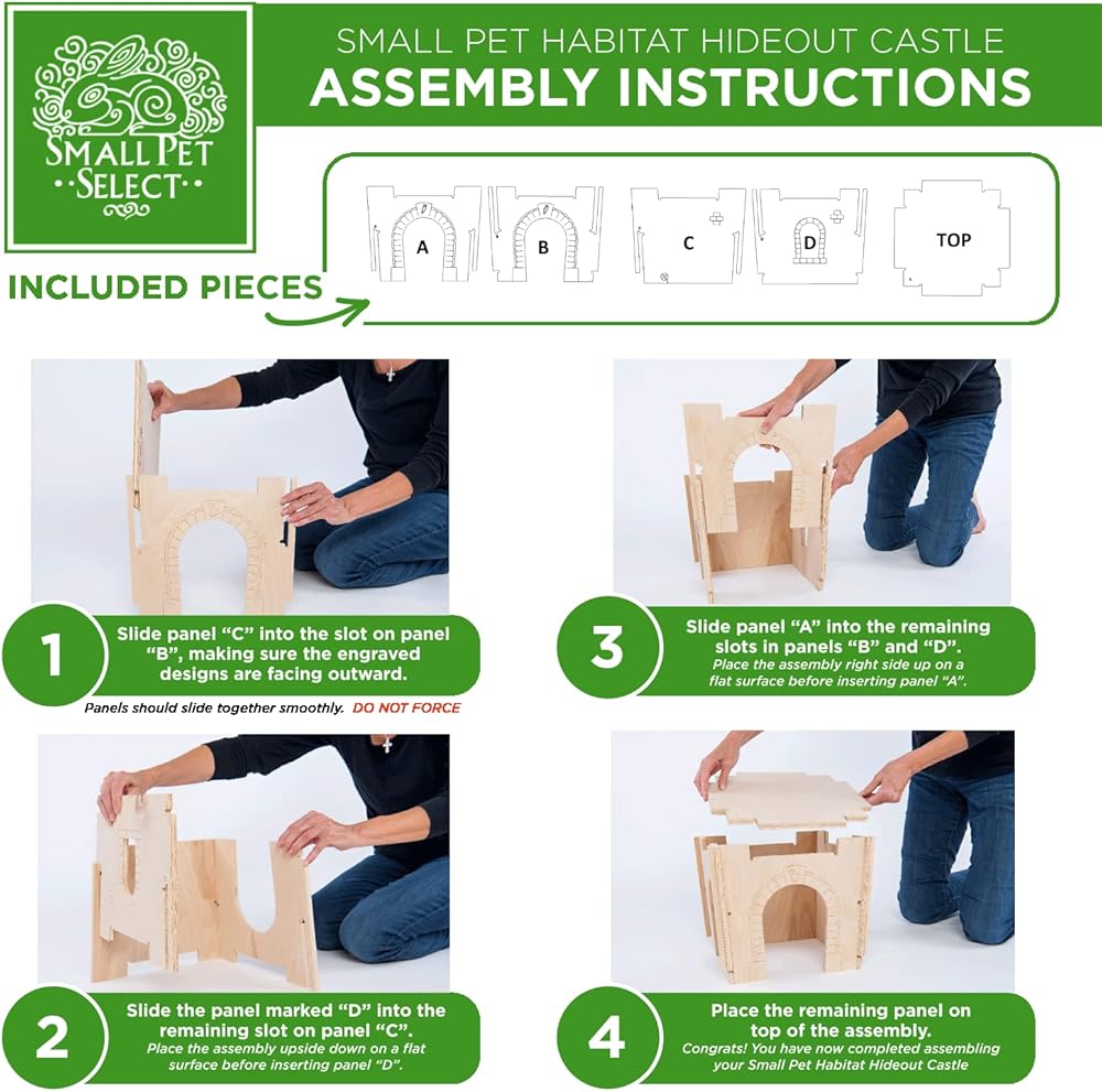 This product is sold as a single item, castles and bridge not included. All items sold separately. It is designed to add on to our other hideaway habitat pieces. We recommend this product for: Our Hideaway Habitat Tunnel is best for small rabbits, and guinea pigs. Details: Get your paws on our new Tunnel for the Hideaway Habitats. It's the perfect addition to your enrichment playground. It connects to castles, bridges, ramps, and more! Designed to be the perfect place for your baby to hide, rest, and romp! Made from professional grade wood, with no screws, no glue. Add on to your castle kingdom: Bridge For Habitat Hideout Castle Small Hay Manger For Habitats Sourcing Location (Wood): USA Dimensions and Weights: 14" wide x 23" long x 11.5" tall Doorway 5" wide x 8" tall Window 2" wide x 4.25" tall