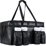 Fancial Food Delivery Backpack, Expandable Insulated Hot Pizza Bags for Delivery Bike, Large Leakproof Waterproof Delivery Bag with 4 Mesh Pockets Reflective Strip for Uber Eat, Camping & Beach, Black