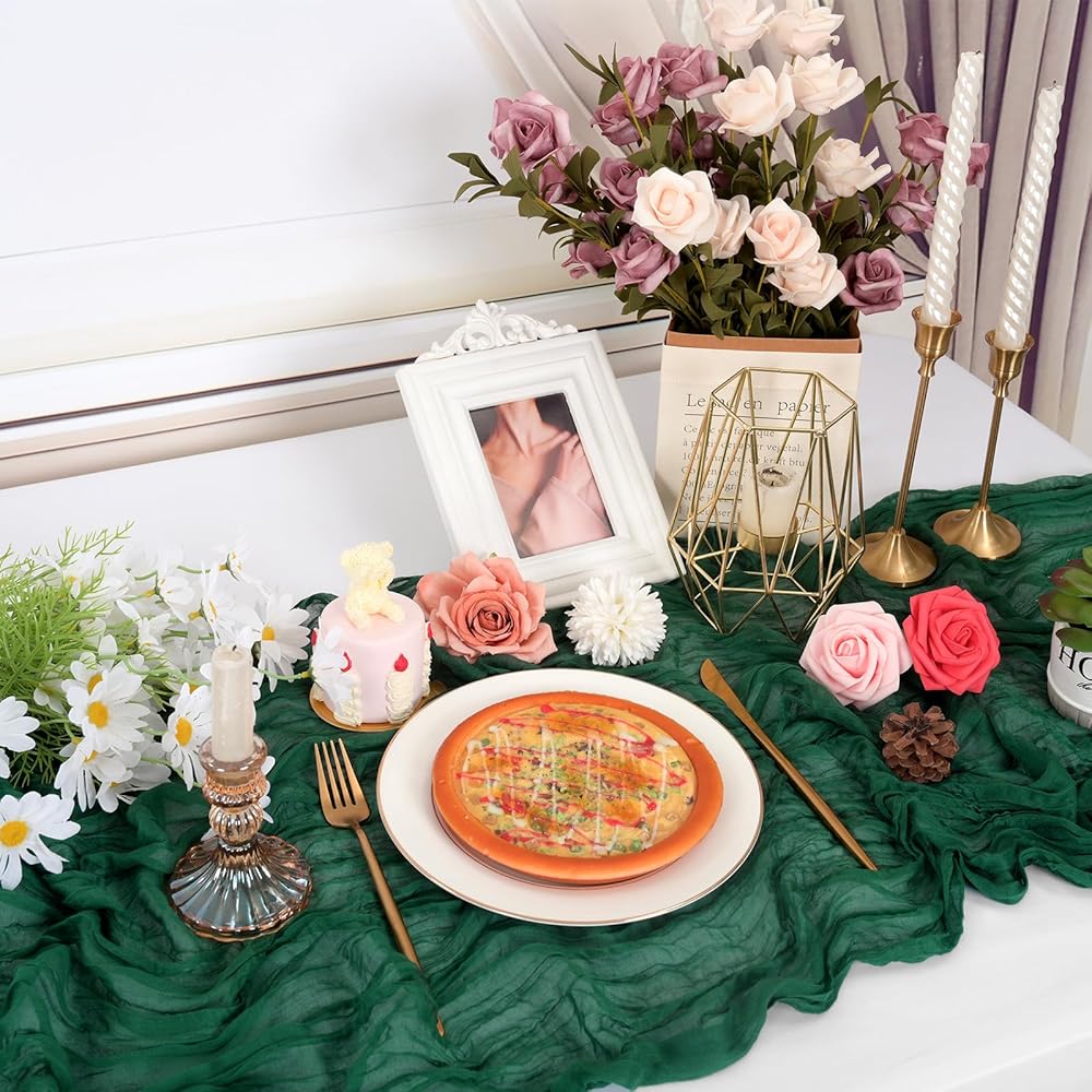 Not only can our cheesecloth table runner be used as a tablecloth table runner, but it is also a vintage and elegant decoration. The crumpled table runner can change the look of your balcony, banquet, party, bar, birthday, wedding, bringing a romantic, soft, warm feeling to your setting.