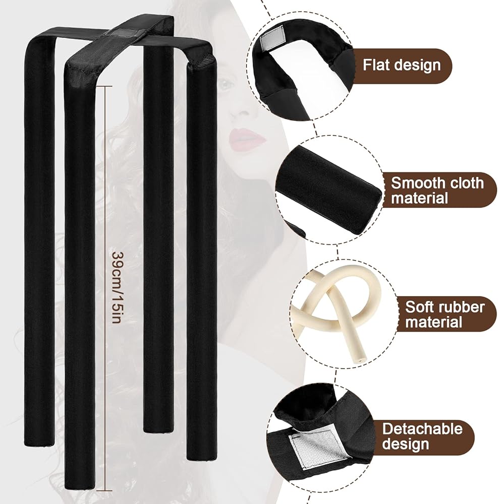 【Curls Styling Kit】 --- Package includes 1 x hair curlers for long hair, 1 x black sleep cap, 4 x hair scrunchies, 2 x hair craw clips and 2 x duckbill clips. The detachable hair roller allows you to increase or decrease rods according to your needs. Our no heat hair curlers with a flat design fits the head better, reducing sliding and discomfort.