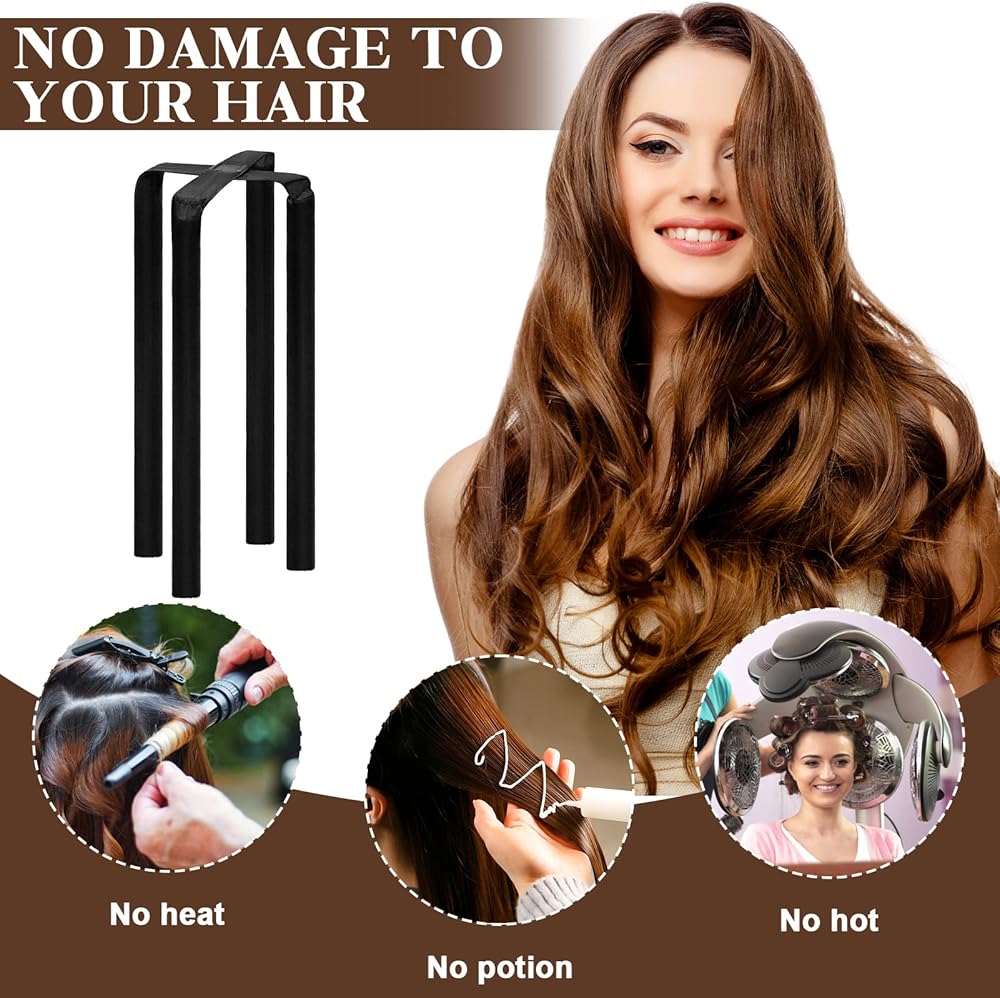 【Convenient and Portable】--- The no heat curlers are lightweight for easy to carry when going out, convenient for you to use at home or outdoor. You can use the no heat curlers to do your own hair styling anytime and anywhere. Whether you are sleeping, cooking, reading or working, you can wear heatless hair curlers without spending extra time.