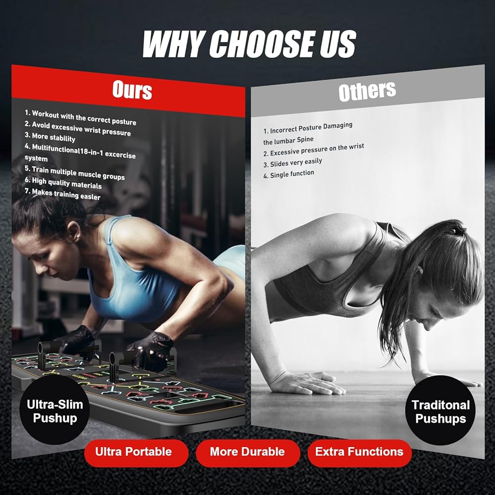 Portable Home Gym System For Men and Women: Push Up Board, Multi-Functional 15 in 1 Foldable Push Up Bar, Push up Handles for Floor, Professional Strength Training