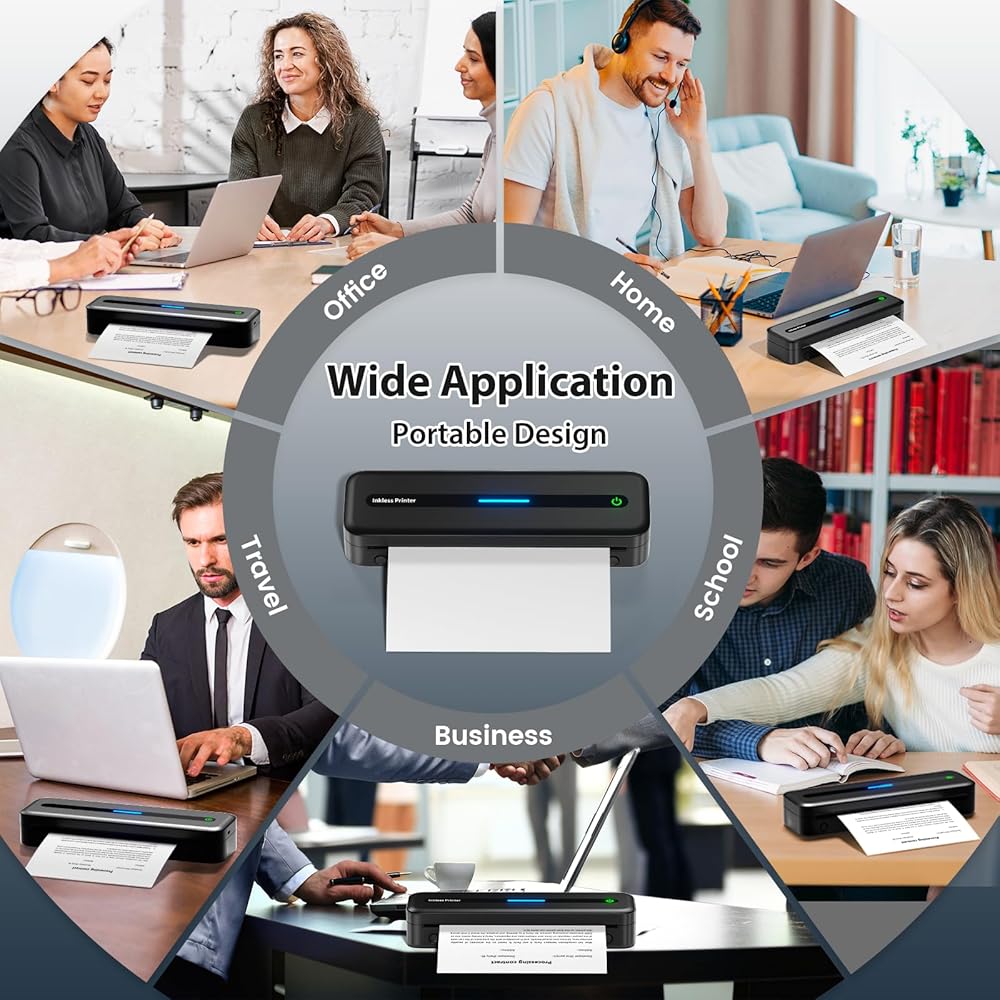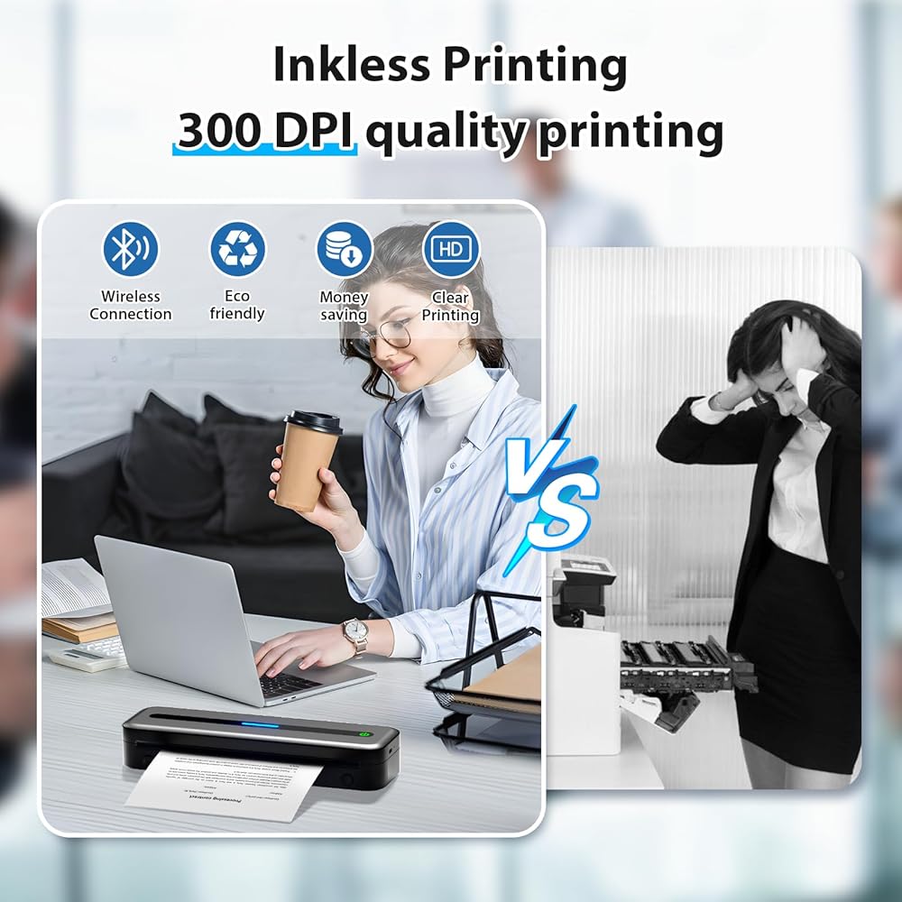 Portable Thermal Printer, Portable Printers Wireless for Travel, Wireless Printer for Phone & Laptop, Supports 8.5"x11" US Letter/A4/4/3/2" Paper, Inkless Printers for Office, Car, Home