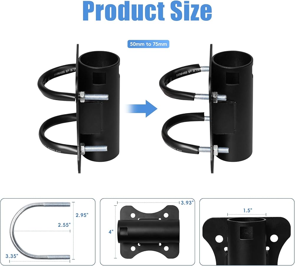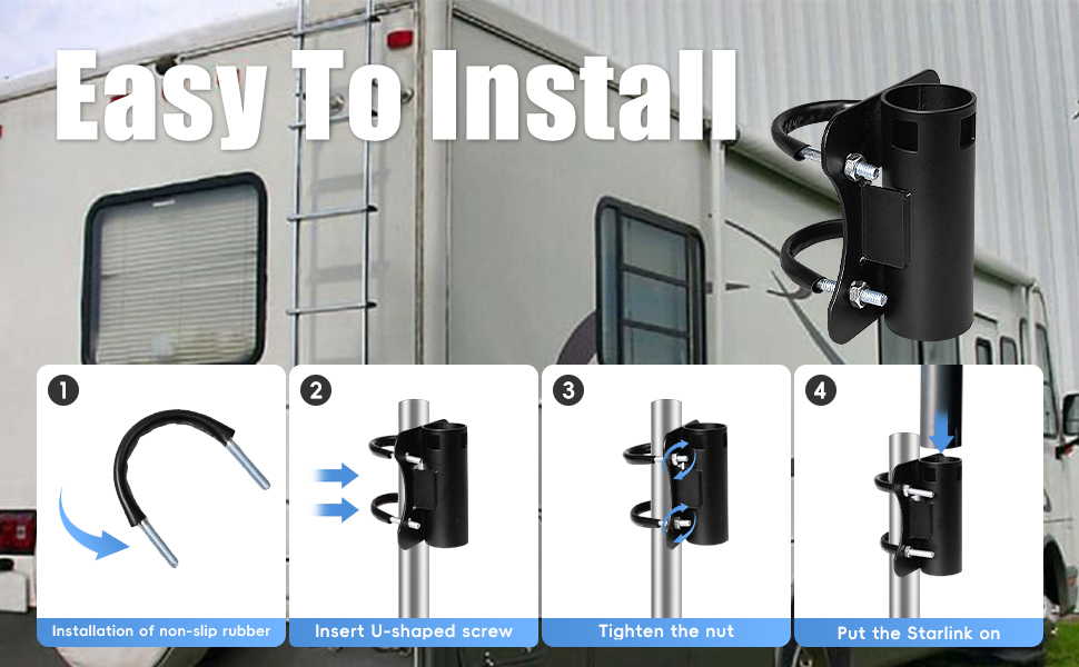 【Easy to Install】Installation the non-slip rubber to the U-bolt. Connect the clamp to the pipe/pole and secure it with double U-bolt thread rods and place the Starlink antenna or other applications into the U-shape plate. Then sesure the 4 screws to fix the applications ready for use.
