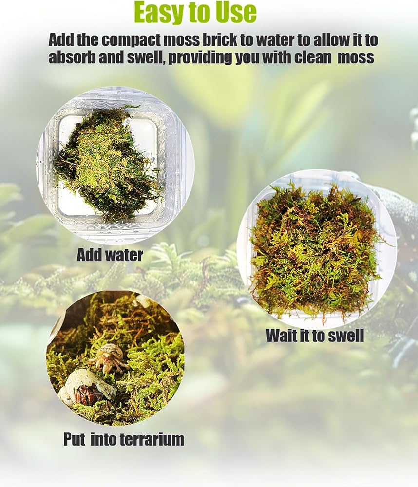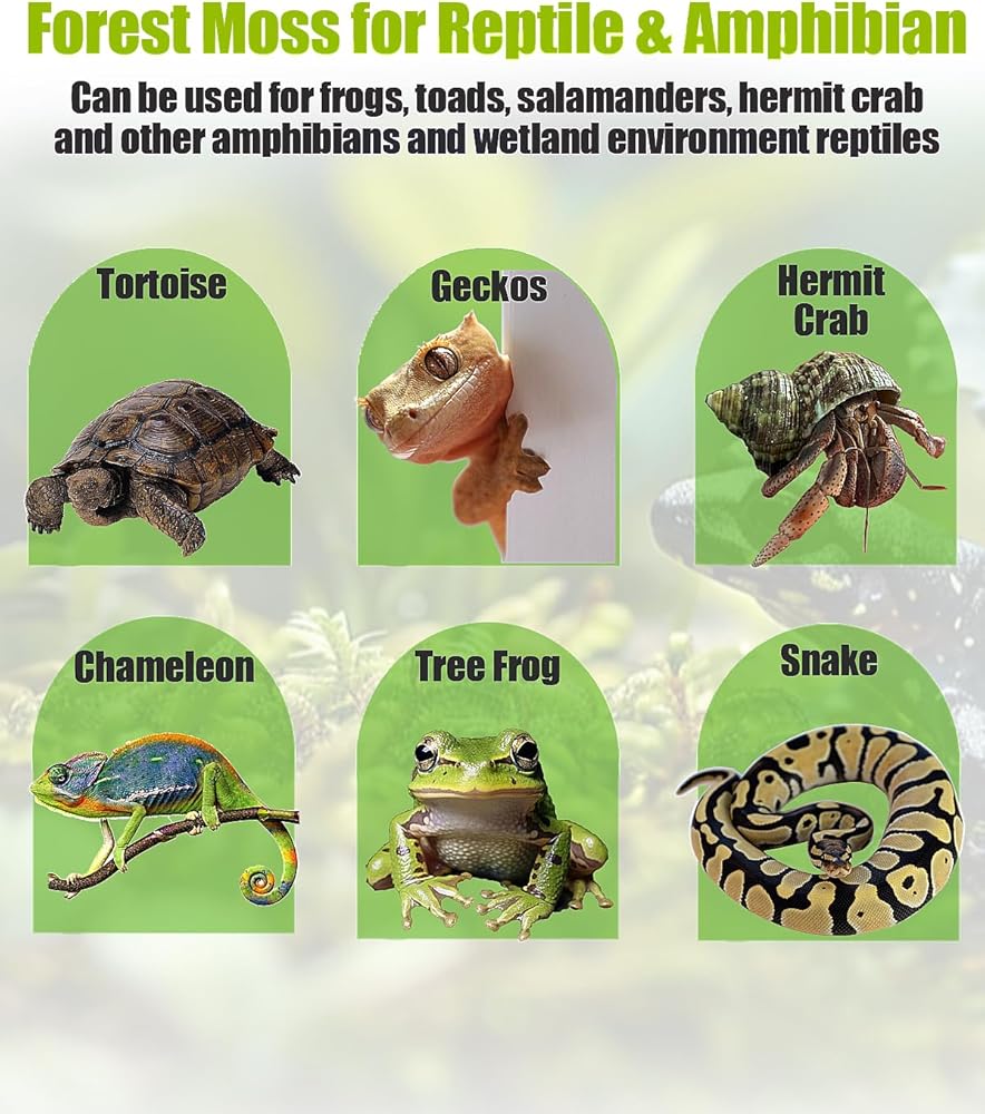 Versatile Application: Ideal for frogs, toads, salamanders, hermit crab, snake, Chameleons and other reptile and amphibians. Plus, this moss enhances soil quality for gardens and potted plants