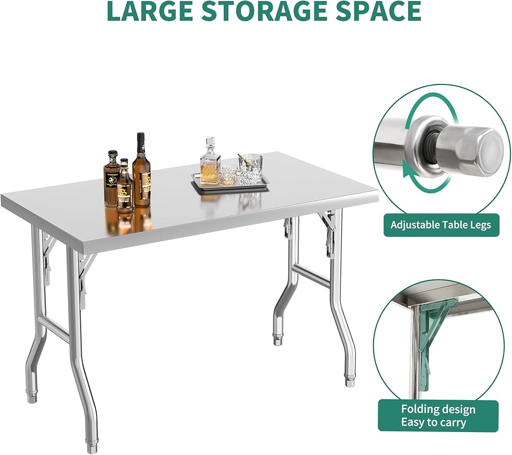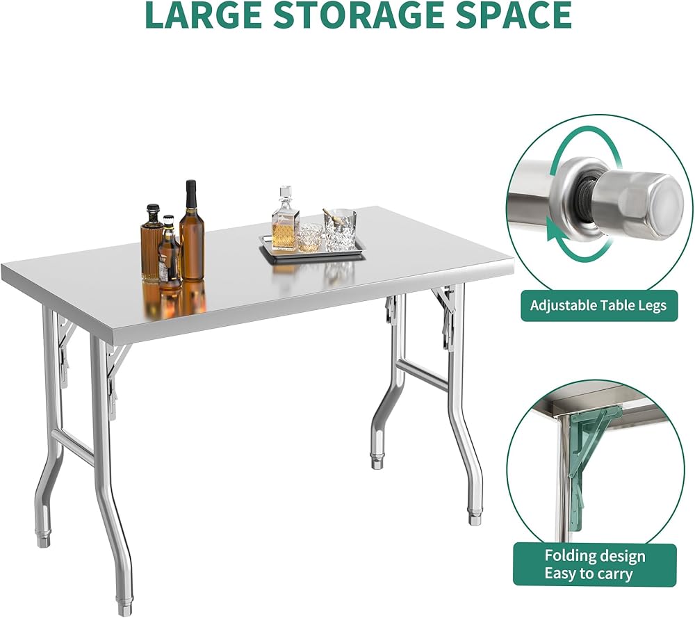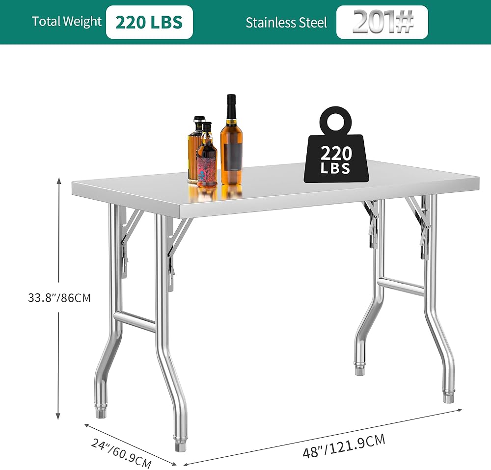 STAINLESS STEEL, HIGH LOAD-BEARING: YITAHOME stainless steel table is made of high quality 201 stainless steel material, which is corrosion-resistant, rust-resistant, easy to clean, and has a long lifespan; 0.6MM thickened stainless steel plate with thickened tubing and high-quality fittings provides a total load-bearing capacity of 220LB