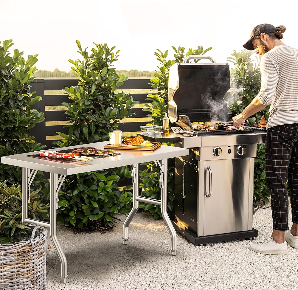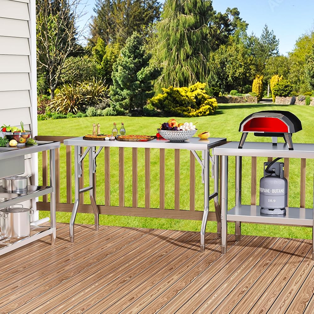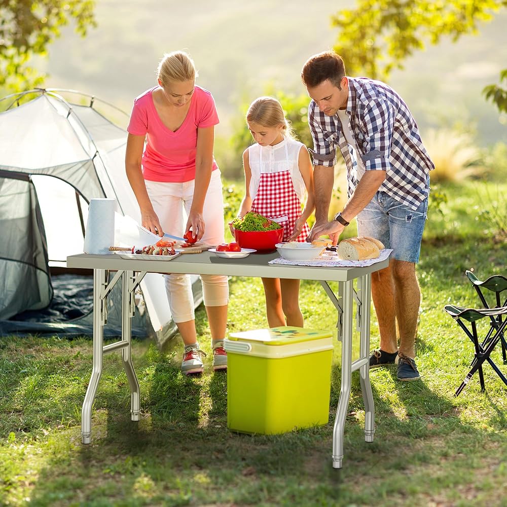 FOLDING DESIGN, EASY TO OPEN: YITAHOME stainless steel folding table has a customized folding mechanism, which can be easily finished by opening and closing, convenient for indoor and outdoor use, as well as easy to complete storage and movement