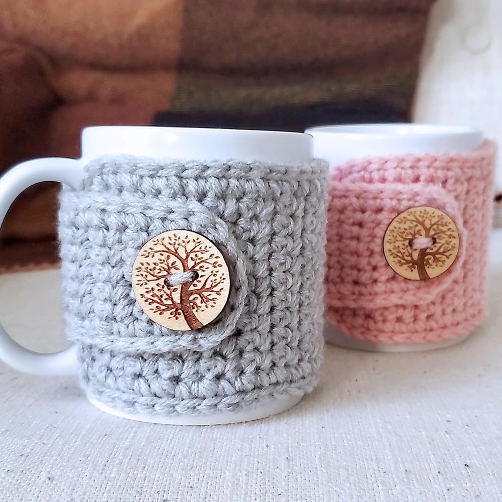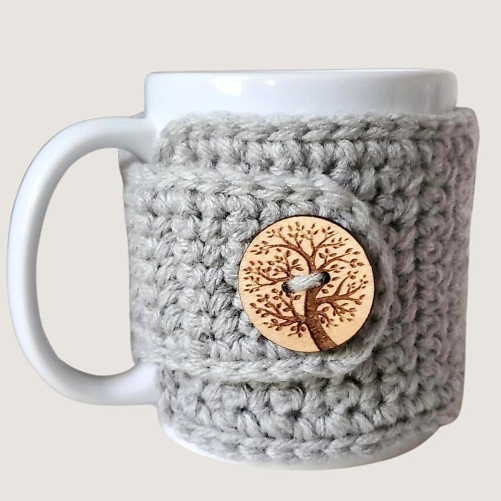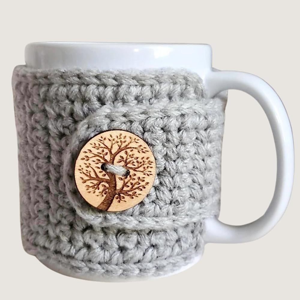 FUNCTION: It is secured around the mug with a buttonhole and button accent to fasten. Place the wrap around your mug and fasten before pouring your beverage.