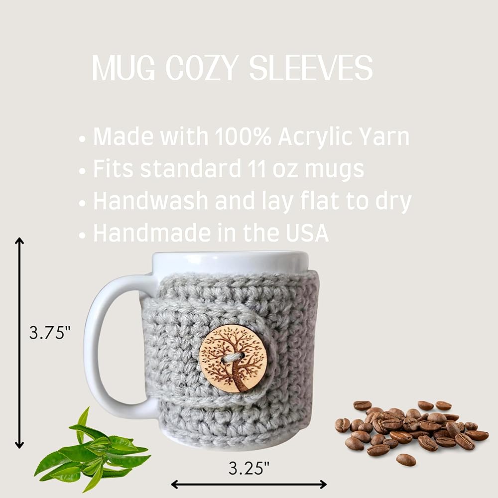 SIZE: Fits standard 11 oz mugs with a circumference of 10 inches and a height of 3.75 inches. Mug not included.