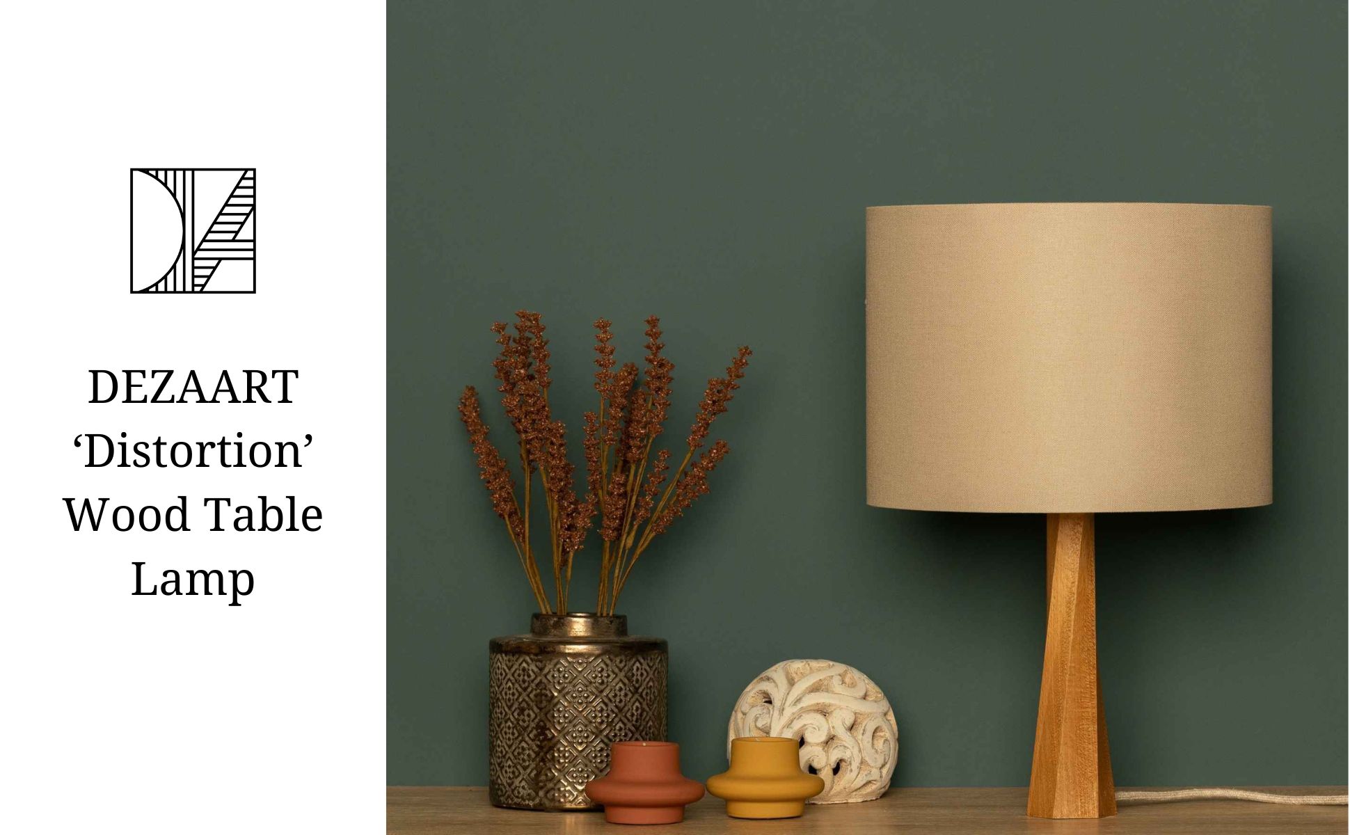 مصباح طاولة خشبي حديث من منتصف القرن من DEZAART (10 بوصات) - حامل من خشب الزان مصنوع يدويًا / غطاء مصباح بيج / ضوء E14 - إضاءة لغرفة المعيشة وغرفة النوم والممر