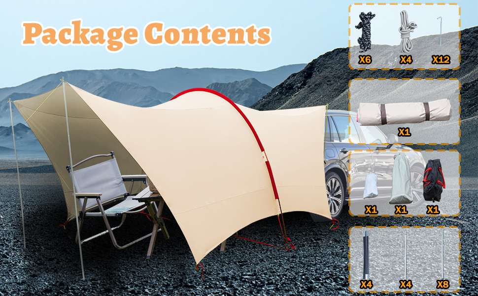 Double use:It is not a simple canopy, it can not only be used with your car or SUV, but you can also put it alone anywhere without any support from your car.
