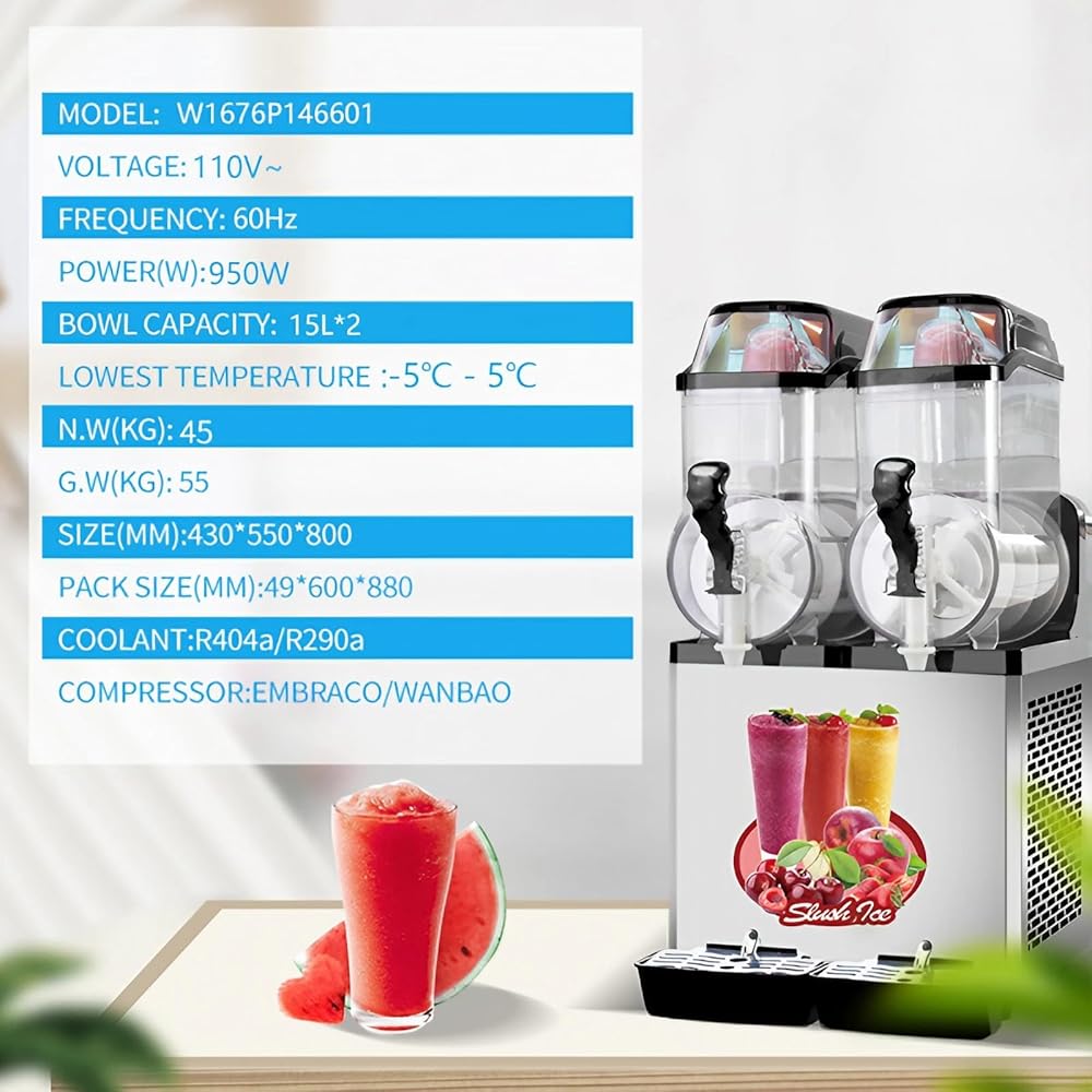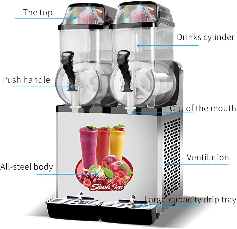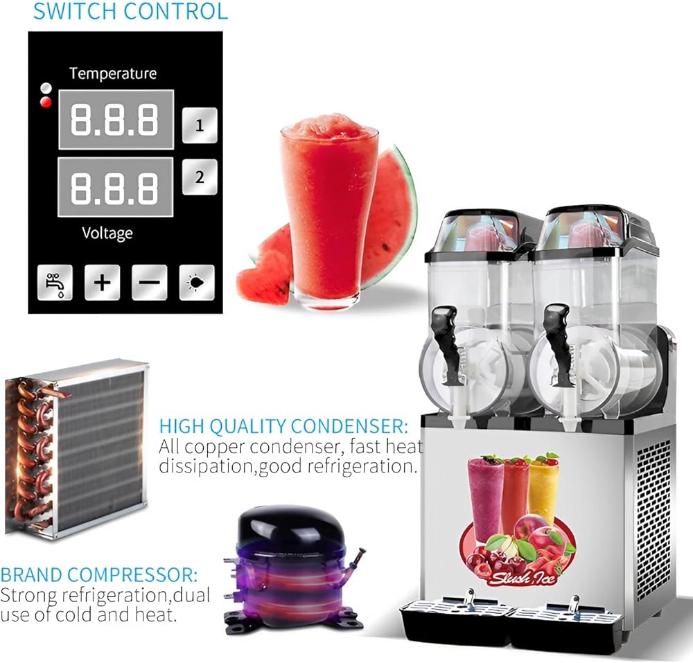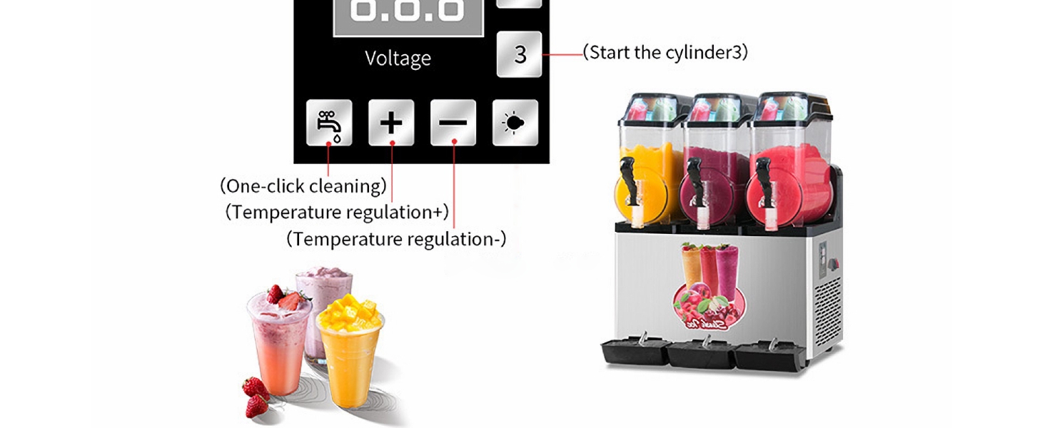 【Multiple Usage Scenario】This slushie machine has wide applications, such as making mixed drink, frozen alcohol and smoothies. Perfect for cafes, restaurants, wineries, bars, parties, beverage van, etc. Coundn't missed in summer time!