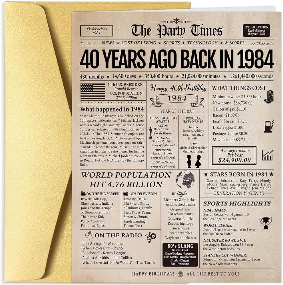 - This 95th birthday card is filled with fun facts and significant highlights of what happened in the year that is displayed.