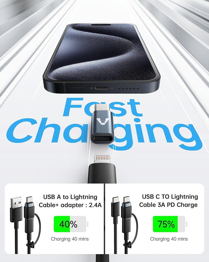 ✅【Support Fast Charging and Data Transfer】This USB C to Lightning adapter support 27W PD fast charging (up to 9V/3A). High 480 Mbps transfer speed, easily transfer photos, music, videos, and files. When you need conversion...very important when you need to charge iPhone and only have a usb c charger.