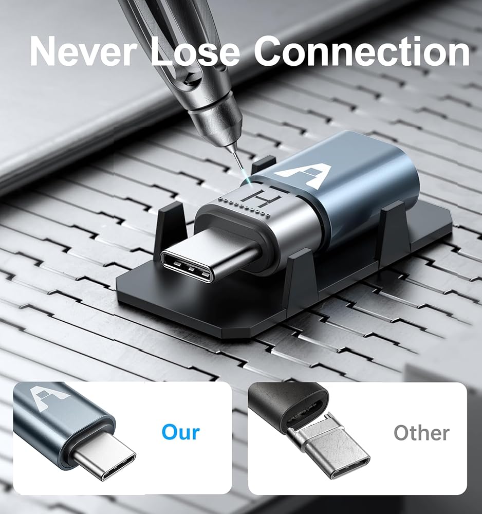 ✅【Tight Fit and Durability】This Apple Certified Adapter has undergone up to 20000 insertion and extraction tests and will not break or loosen. It fits tightly and has excellent heat dissipation and pressure resistance. As an Apple product user, and with their myriad of plugs, you have to have some adapters. Once you push the adapter onto the USB-C plug, you should hear it click and it stays on just fine.