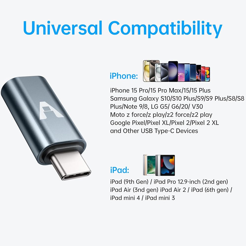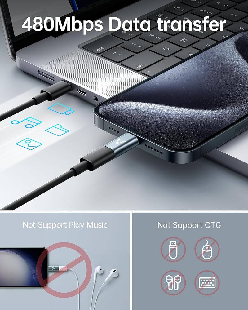 ✅【Kind Reminder】This adapter supports fast charging and data transmission, but does not support OTG or headphones,U-Disk,Flash Drive,Hub,Keyboard,Mouse,USB-C Security Key,Dongle