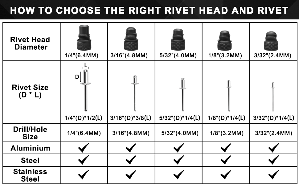 Complete Kit: This manual hand riveter tool kit comes with 210 rivets and 5 nosepieces, offering you everything you need to get started right away. No need to purchase additional accessories.